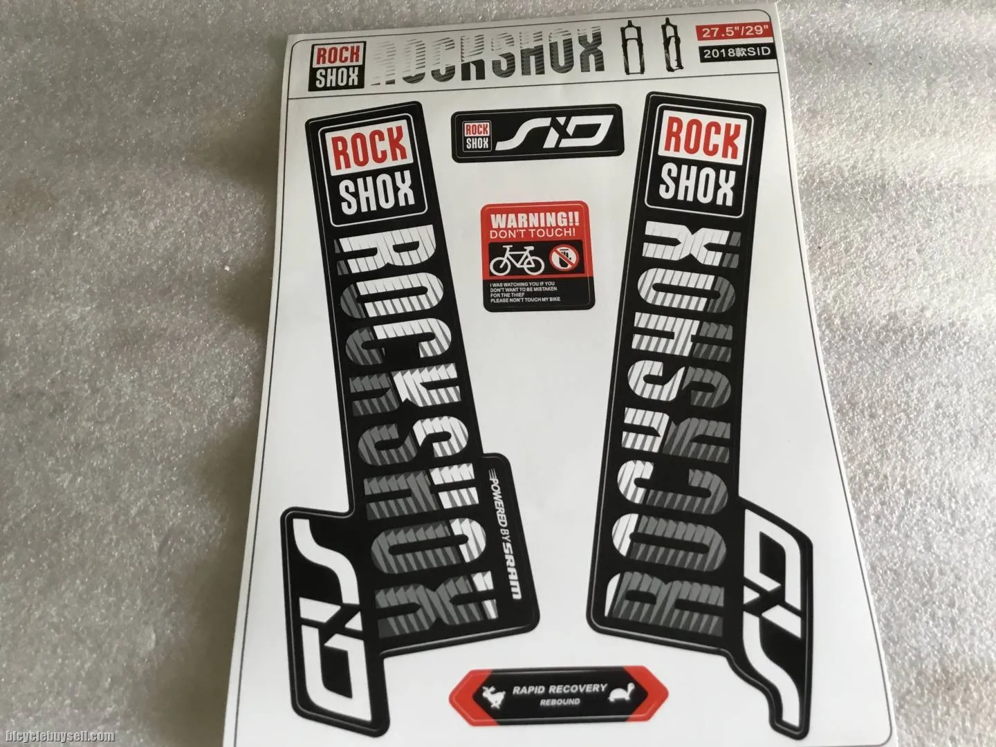 Brand new Rock Shox Sticker. New model. Rock Shox SID fork sticker. Compatible for 26,27.5,29er. Free pos west.m. East.m add Rm10. 012-419 8933