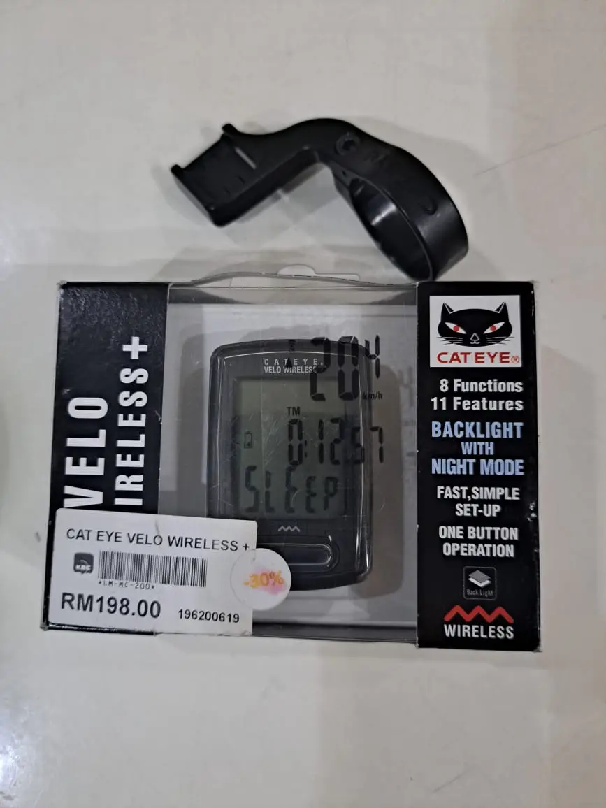 CAT EYE Velo Wireless+ cycling computer, in very good condition, black color, comes with extra original CAT EYE ‘upfront’ computer mount. For features and detail,pls refer to pics or visit their website.