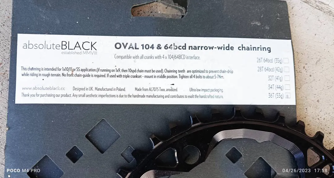 Absolute Black Oval 36t Chainrings