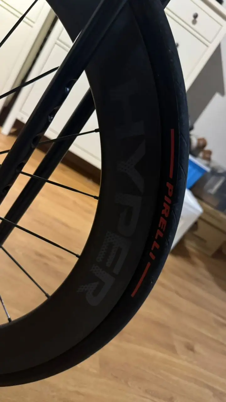 Hyper wheelset, Ultegra FD & Chainset, Shimano 105RD, Tubeless Pirelli tyres, Garmin 840 Bike Computer, Favero Powermeter, Fizik 3D Saddle