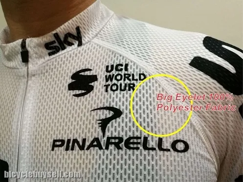 Jersey: big mesh Cool-tech Polyester dengan 3 poket, zip penuh.