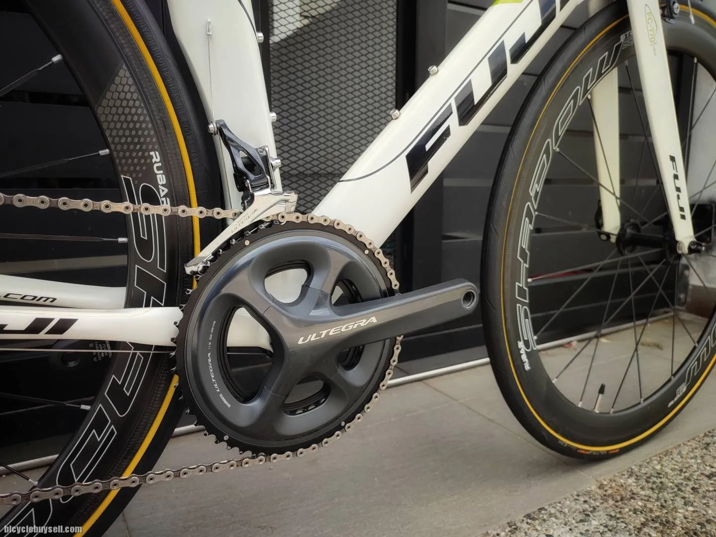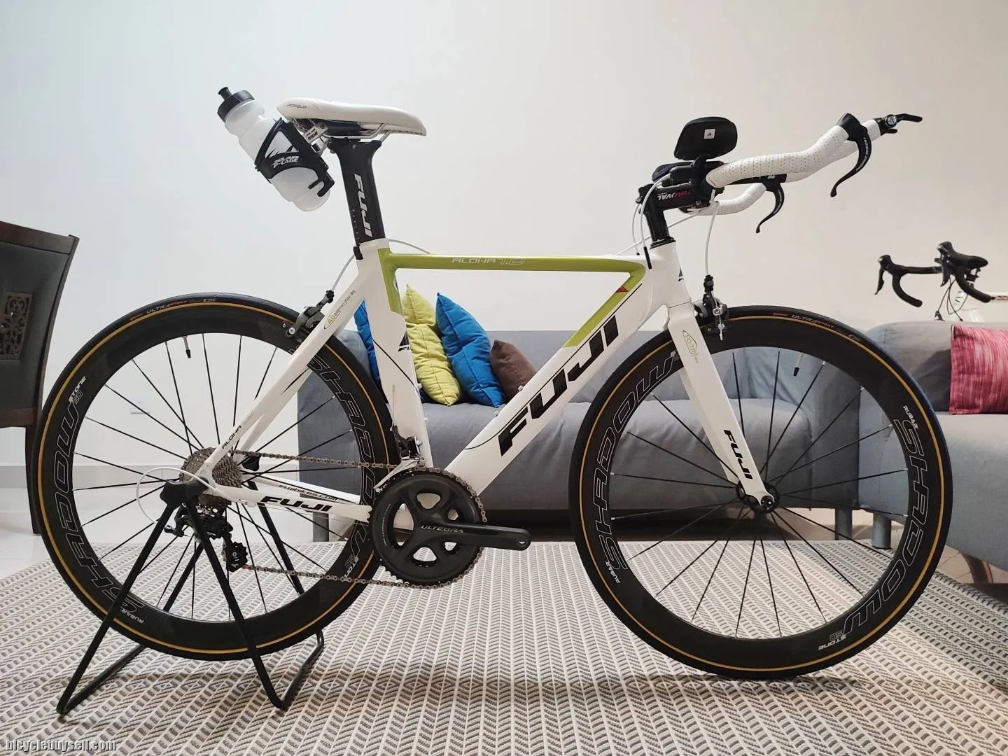 Assalamualaikum. Jualan complete bike FUJI Aloha Triathlon Aero Bike Made in Taiwan Size S (52) Condition 9/10 Quaternary phase alloy frame Carbon fork Carbon aero seatpost Profile Design cockpit Profile Design T2 Wing basebar 420mm Profile Design T4+ aero bar Profile Design F-35 pads Profile Design brake lever Oval Concepts Stem 90mm 2 x 11 speed Shimano Dura Ace SL-BSR1 2/11 Shifter Shimano Ultegra 6800 crankset 52-36t, 170mm Shimano Ultegra 6800 front derailleur Shimano Ultegra 6800 rear derailleur SS Shimano Ultegra 6800 cassette 11-28 Shimano Ultegra 6800 brake caliper Shimano Ultegra bottom bracket SRAM 11s chain Rubar Shadow 50mm Carbon wheelset (Made in Taiwan) with aero spokes Continental Ultra Sport yellow wall 25 (Brand new) ISM Adamo saddle (OEM) XLAB Mini rear bottle cage (bottles not included) Nego WhatsApp 017-6144887 Location: Ulu Tiram, Johor