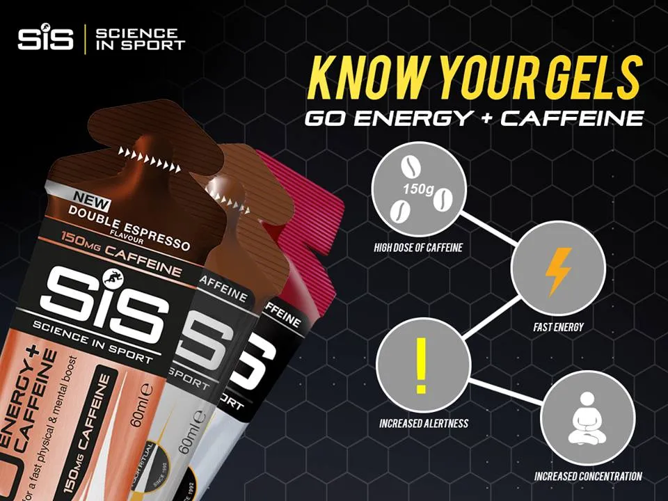 NEW STOCK SIS Science in Sport GO Energy + Caffeine Gel 60ml HALAL Cola Berry Double Espresso