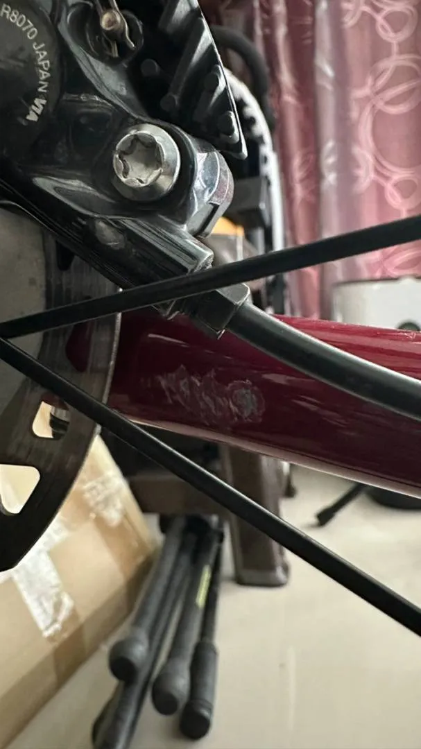 Slight scratches on chain stay left inside, chain stay right outside and beside crank inside due to chain drop.