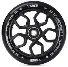 ​The Envy Lambo 120mm pro scooter wheel comes with a 26mm wide urethane that provides more grip in corners. 86A durometer urethane provides a softer feel and extra grip so it keeps you from sliding aorund at the skatepark.The wider urethane on this wheel makes it a little difficults to install on your fork; please be careful with installation. These Envy Lambo 120mm scooter wheels are sold individually and INCLUDE ABEC 9 bearings. Keep in mind that these wheels are bigger than your average wheel so they might not fit on any scooter. If you are unsure about what wheel size to purchase, feel free to contact and ask us!