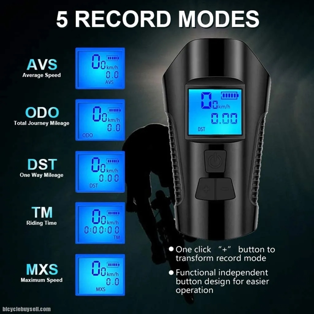 USB Rechargeable Bicycle Front Light Integrate Ultra Loud Electric Bicycle Horn & Wireless Speedo meter