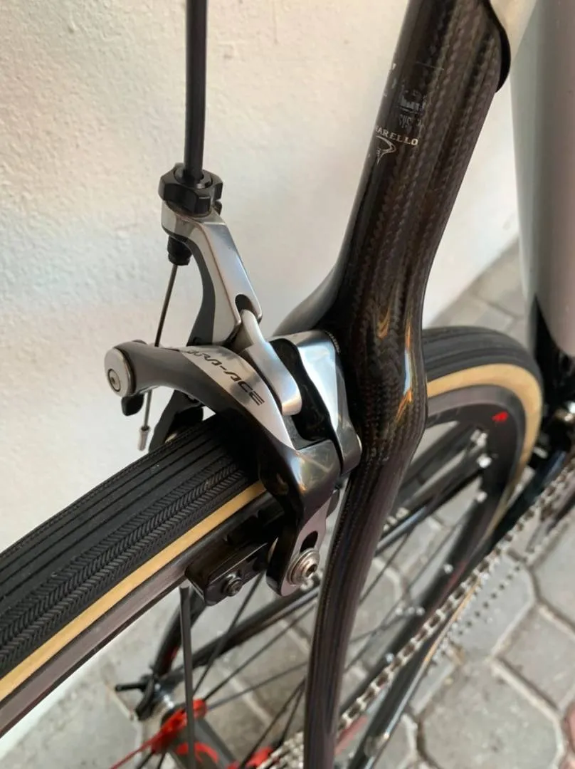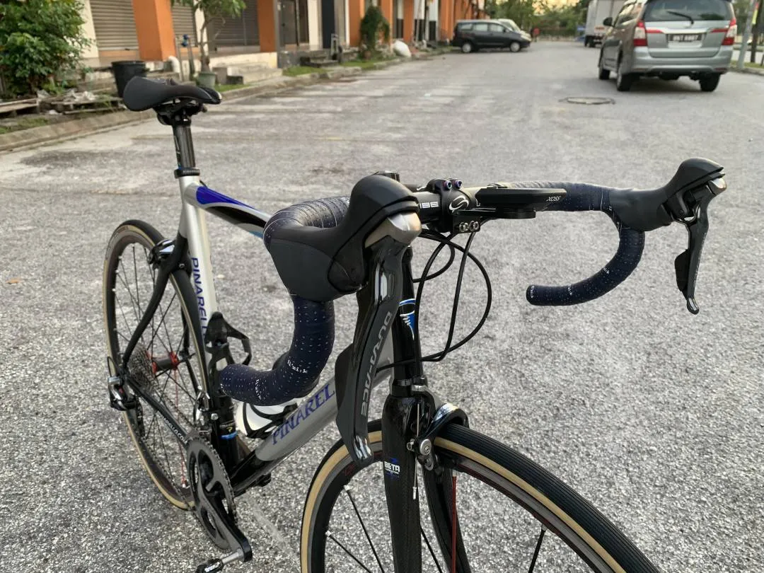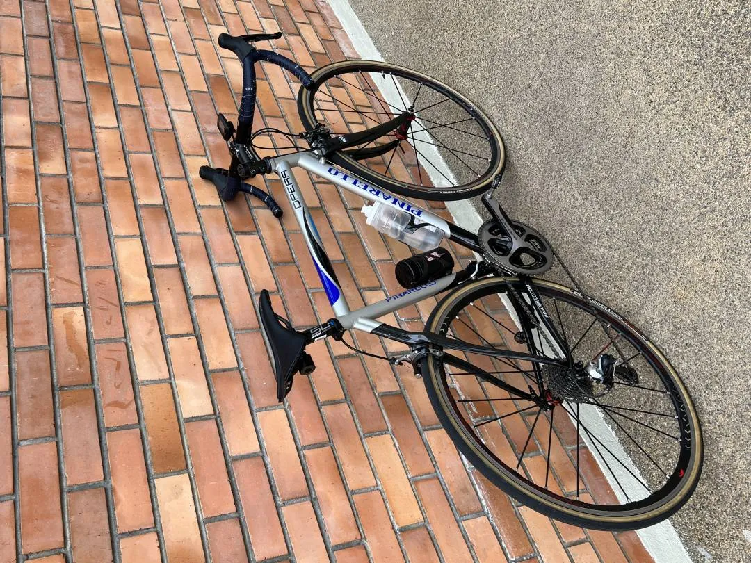 The mainframe is constructed from Dedacciai EOm 16.5 steel tubing paired to a full carbon rear triangle and carbon Aria fork. Made in a bygone era when Pinarello still made their frames in Italy, not China or Taiwan.