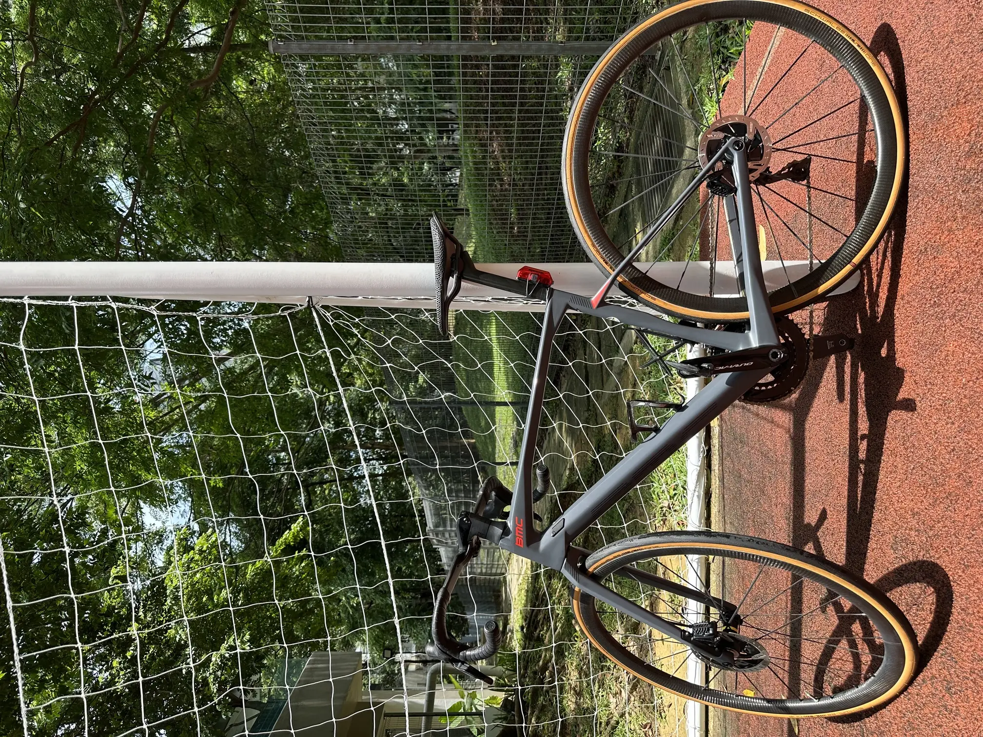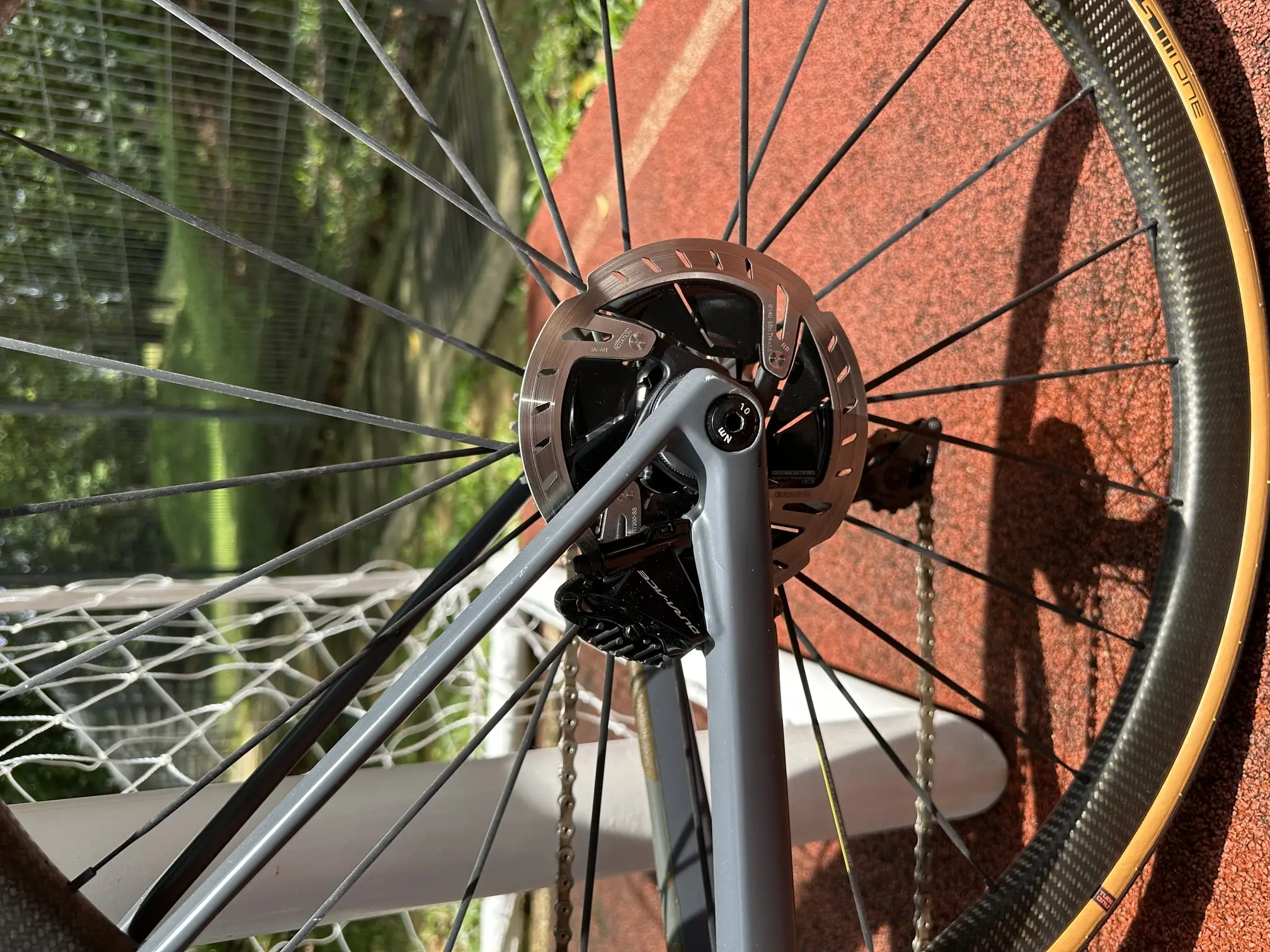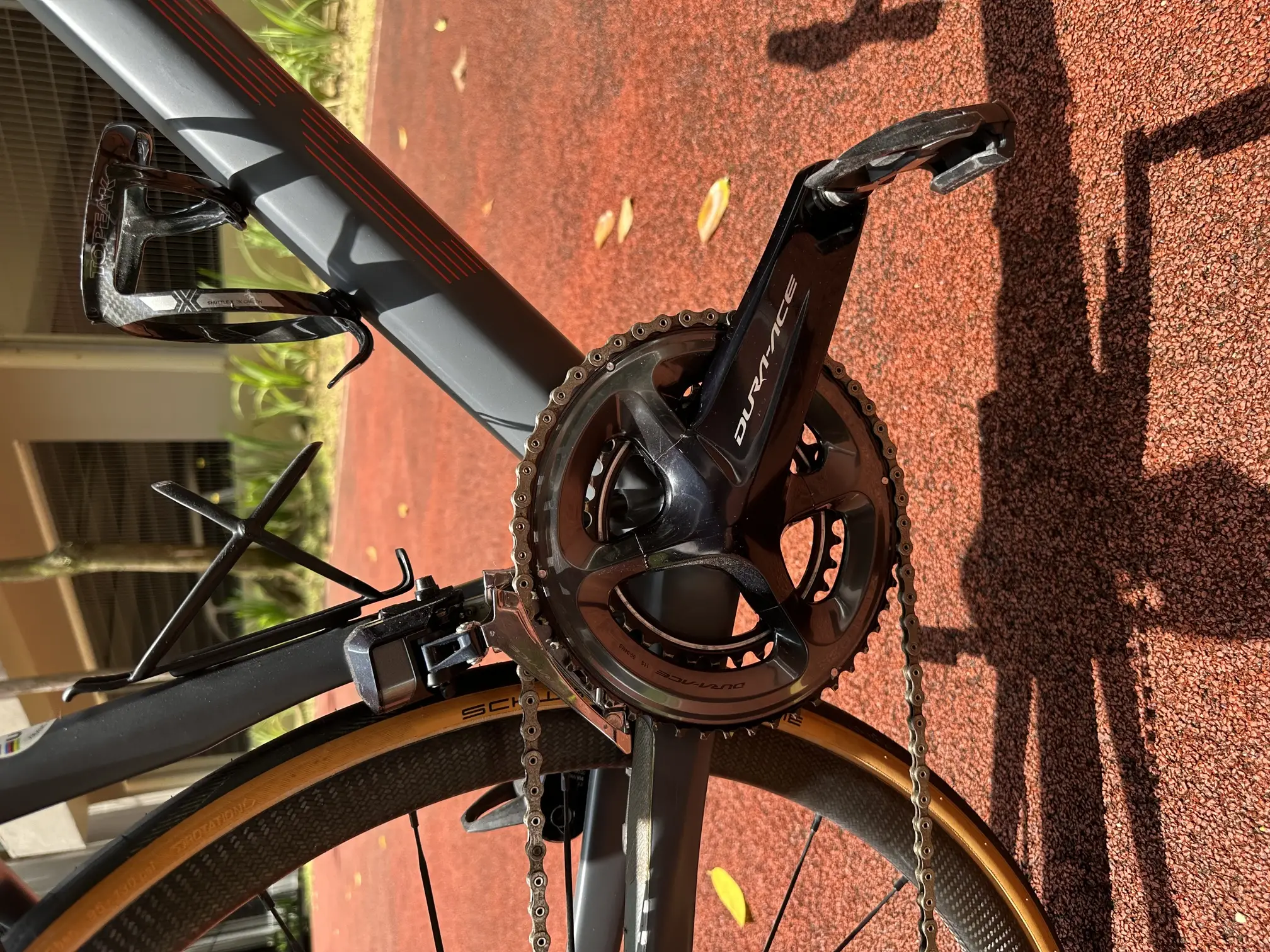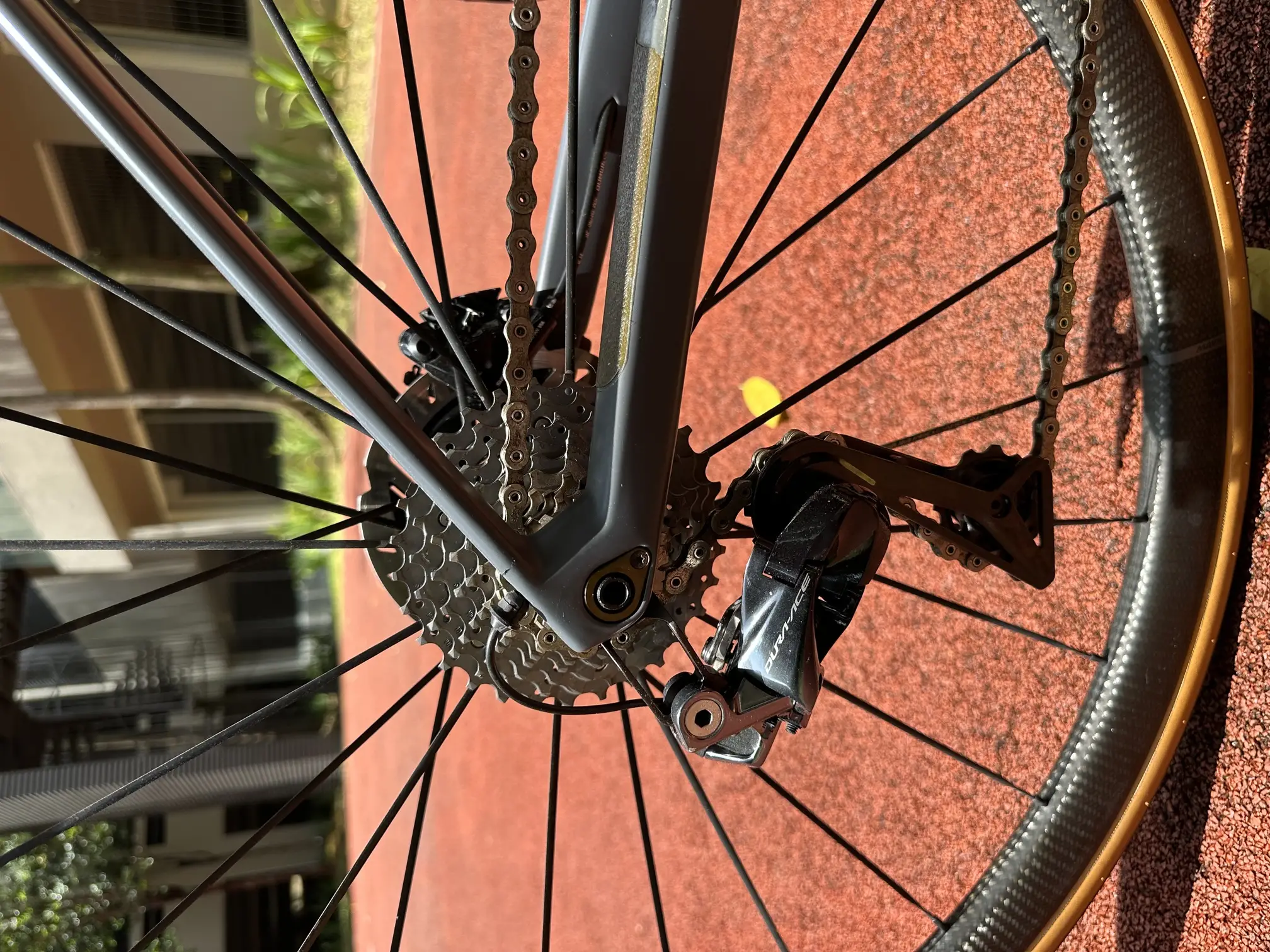 Regular maintenance every 6 months, light scratches. Has a Duraace Di2 Group set