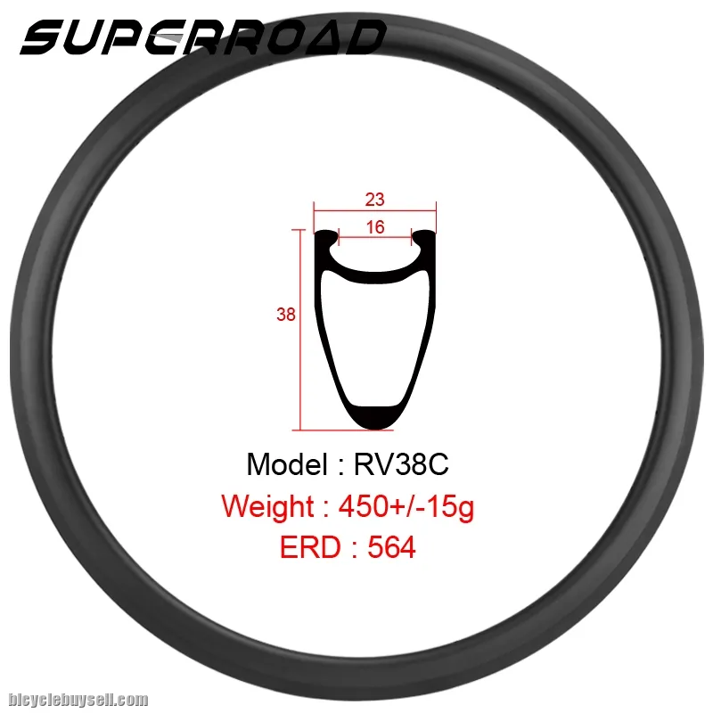 Model:RV38C/RV38C-SL Material:Toray T700/Toray T800 Rim Width:23/16mm/23/16mm Rim Depth:38mm/38mm Weave:UD/3K/12K/Twill/UD/3K/12K/Twill Finish:Matte/Glossy/Matte/Glossy Rim Type:clincher/clincher Use:Road Bike/Road Bike Brake System:Rim Brake/Rim Brake ERD:564/564 Spoke Holes:24/28/32H/24/28/32H Rim Weight:450+/-15g/420+/-15g Angle:+/-5°/+/-5° Max Spokes Tension:130kgf/130kgf Max Tyre Pressure:120 Psi/120 Psi Max Rider Weight:120 Kg/110 Kg Tyre Size:25-28C/25-28C Decals:customized/customized Warranty:2 Years/2 Years Tel: +8613750980256 Whatsapp: +8613750980256 Website: http://www.superroadbikes.com