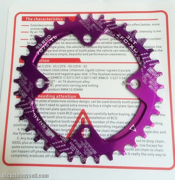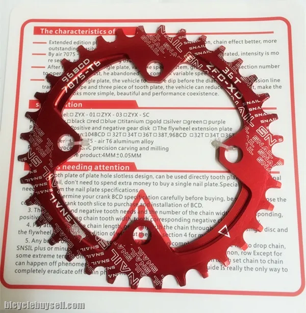 SNAIL 96BCD OVAL Chainring SNAIL 34T 36T MTB Narrow Wide Crankset