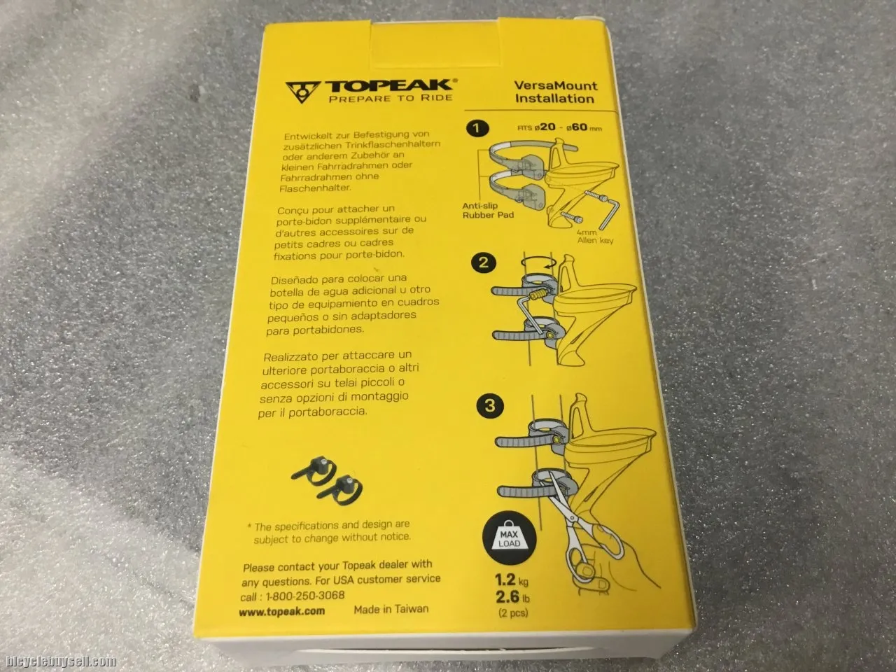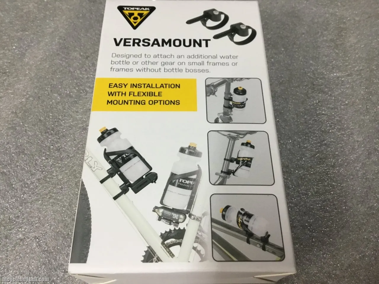 TOPEAK VERSAMOUNT - 2pcs (1set) DESCRIPTION: Versatile mount for additional water bottle cage or other accessories. Band style clamp provides easy installation and flexible mounting options. Fits tubes ø20 - ø60mm. CLAMP Fits tube sizes ø20 - ø60 mm MATERIAL Engineering grade polymer MAX LOAD 1.5 kg / 3.31 lb WEIGHT 26 g / 0.92 oz (2 pcs) Details... https://www.topeak.com/global/en/products/bikepacking-series/1093-versamount Free pos west.m East.m add Rm10. Tel:012-419 8933