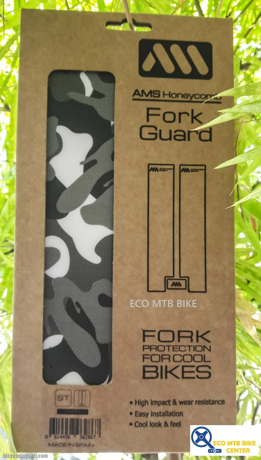 ~ CAMO, AMS Honeycomb FORK Guard is specially designed to protect mtb forks from impacts, scratches and cable rubbing.