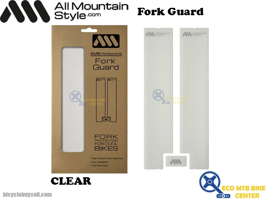 ~ CLEAR, AMS Honeycomb FORK Guard is specially designed to protect mtb forks from impacts, scratches and cable rubbing. It's made of an exclusive, super easy to install, honeycomb adhesive pvc, the same as our successful Frame Guards, in CLEAR, transparent color, so it won't cover the graphics of your cool fork.