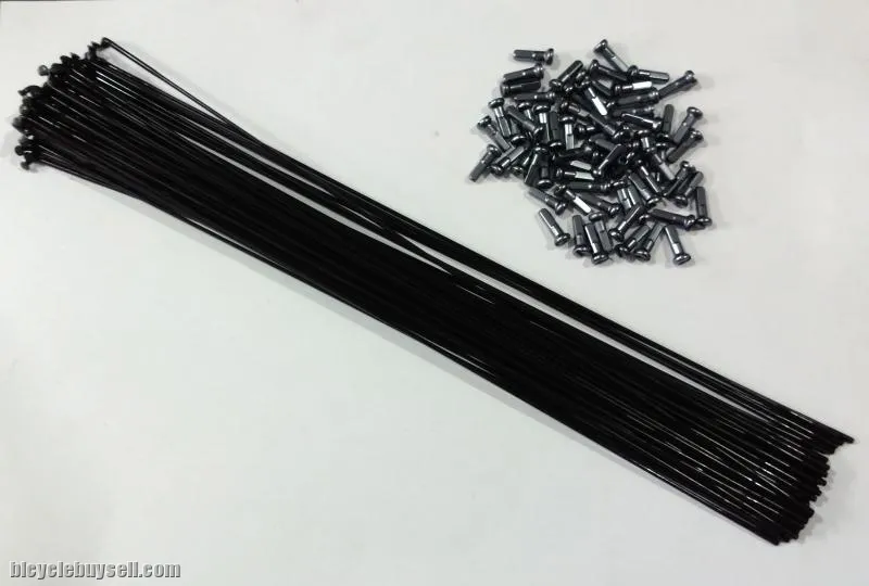 One set 64 spokes and 64 gray alloy nipples.