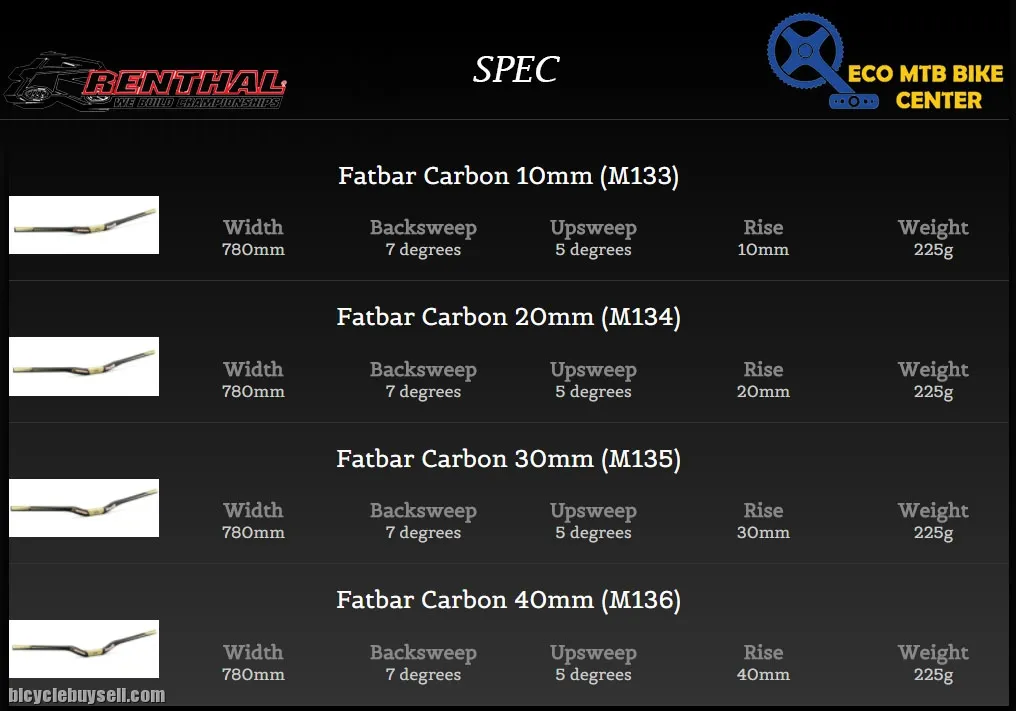 RACE GEOMETRY ~ The width has increased up to full 800mm. The Fatbar Carbon features proven 7° back sweep / 5° up sweep combination and is available in 10, 20, 30 and 40mm rise options, to suit any bike and any rider preference.