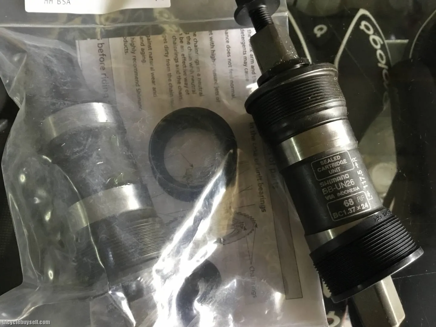 The SHIMANO UN26 bottom bracket offers smooth rotation for square taper cranks.