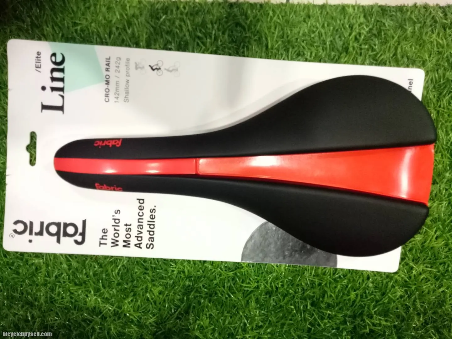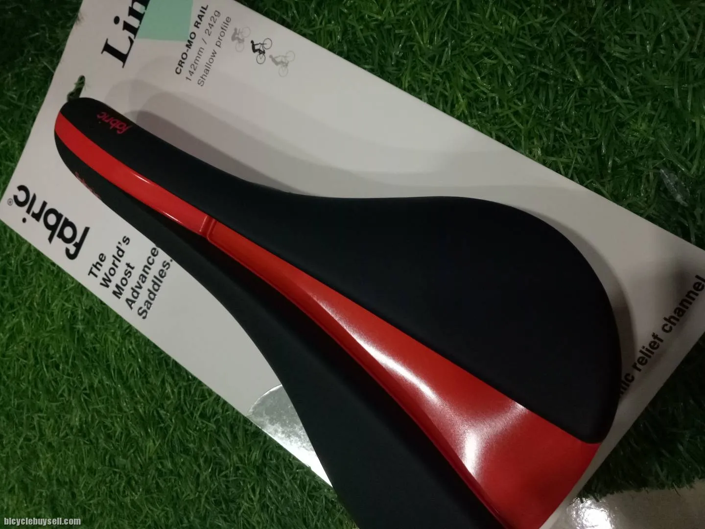 Brand new with red color design!! Fabric Saddle ðŸ˜ðŸ˜ðŸ˜ðŸ˜ðŸ˜ðŸ˜ Fabric Line 242gram Size 142mm Shallow profile -----> for roadbike / mtb yang biasa body 45 degree Fb: raja uda folding bike Heng 0164432074