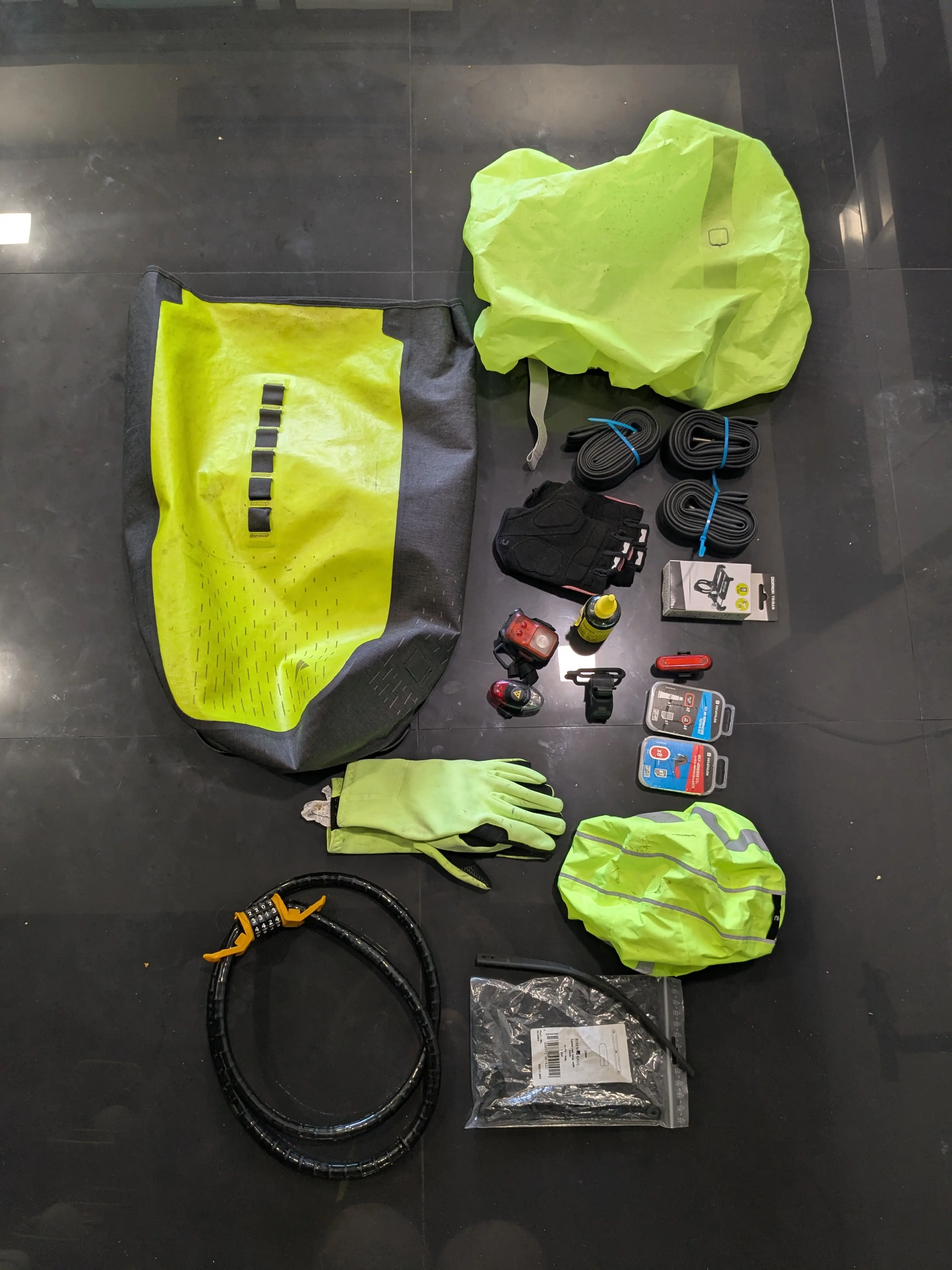 You can also have a host of cycling extras like spare inners, gloves, bike lights, locks, bike bag stuff.