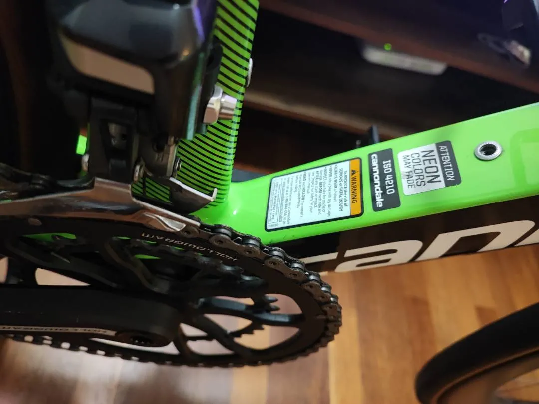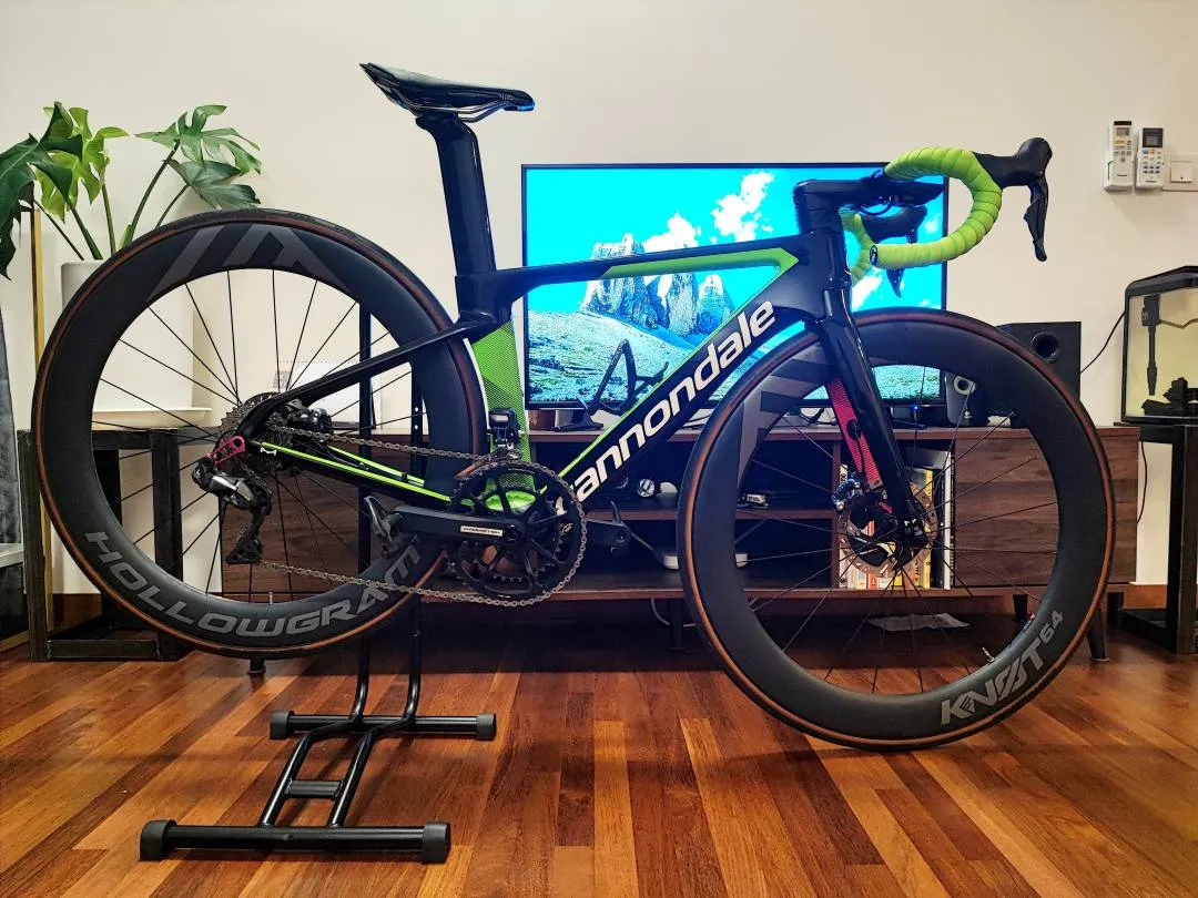 Cannondale SystemSix Hi-Mod Size : 47cm (160cm -171cm) Colour : Black/Neon Green/Pink Shifter : R8050 Hydraulic Shift FD : R8050 Di2 RD : R8050 Di2 Crankset : Hollowgram 52/36T Brake : R8050 Hydraulic Rotor : Dura Ace SM - RT900 Cassette: Ultegra R8000 (11-28) Wheelset : Hollowgram Knot64 Tyre : Continental GP5000 (25mm) D-Fly :WU111 Bike worth RM31k Now Selling complete bike RM18.5k Frameset only RM15.2k WhatsApp : 0103811156 https://wa.link/di4j26