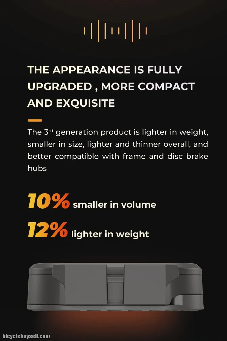The 3rd generation product is lighter in weight, smaller in size, lighter and thinner overall, and better compatible with frame and disc brake hubs.
