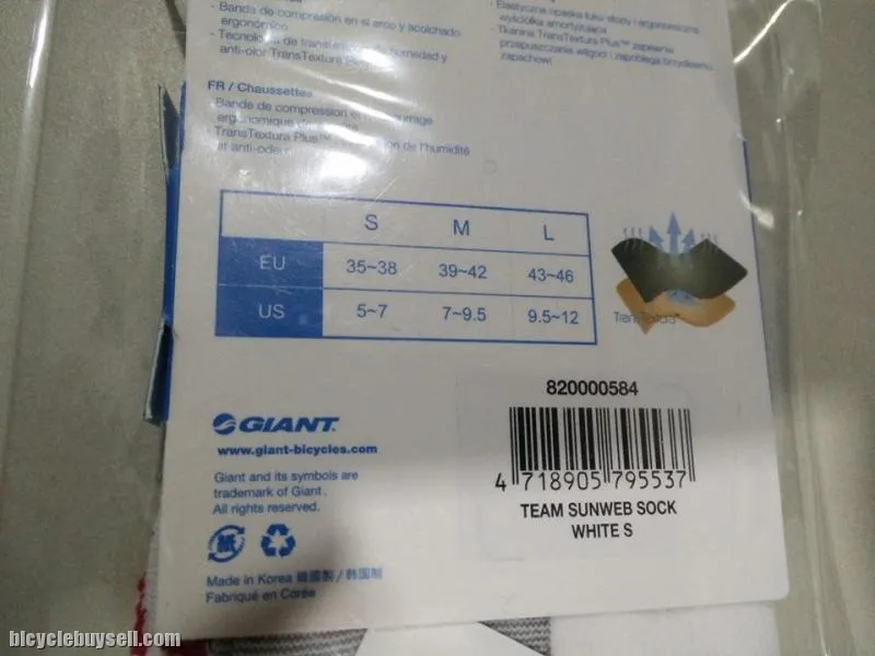 TEAM GIANT SUNWEB CYCLING SOCKS 8 INCH WHITE - MADE IN KOREA FOR MEN