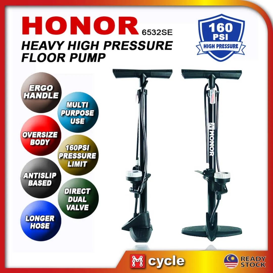 HONOR 6532SE HEAVY DUTY BICYCLE FLOOR PUMP 160PSI HIGH PRESSURE DUAL VALVE AV FV
