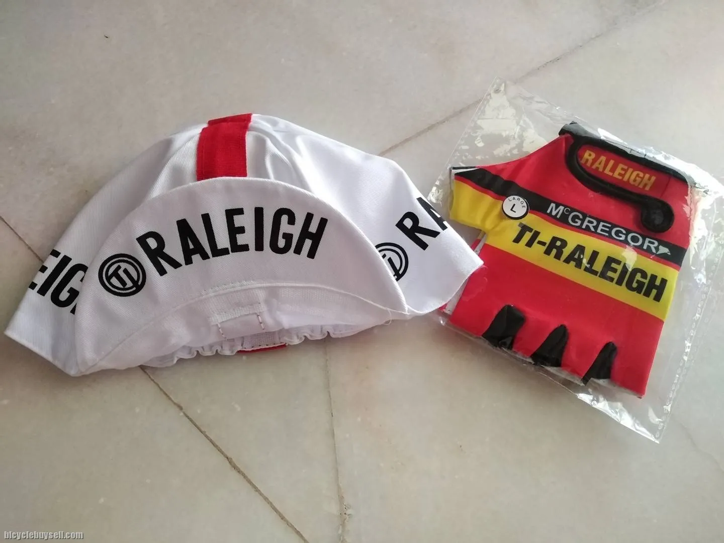 Dear BBS Viewer...letting go this...Raleigh TI cycling Cap and Gloves. Cap made in Italy. Condition is new...Image shown is actual item you will received....If interested pls call or Whatsapp 0162852661 for Better Dealing and arrangement...TQ Note : This Raleigh cycling Cap condition is New. 65% polyester 35% Cotton..Gloves size M. Status : Still Available...Courier service can be arranged TQ Note : You may view my other Vintage & Ultegra 6700 items posted in BBS by key in my name and click on search....TQ
