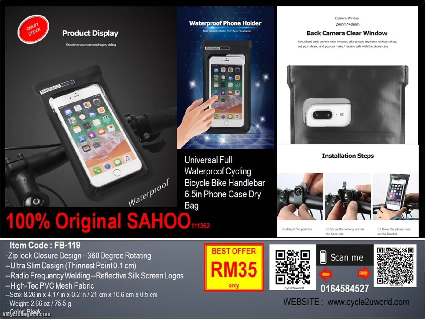 Original SAHOO Universal Full Waterproof Handable bag 6.5inch handphone Case Dry Bag