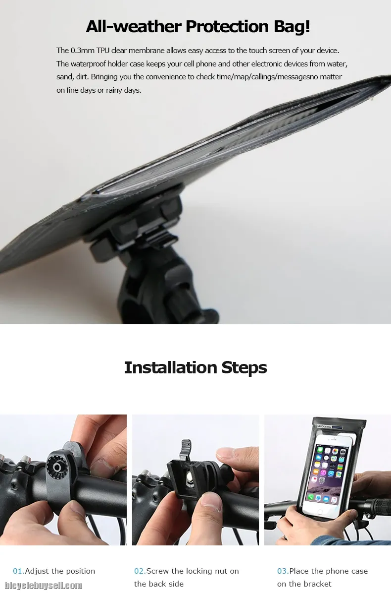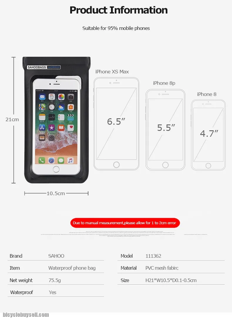 --The Phone Bag fits large size phones and it is designed to be waterproof. The super thin film makes the touch sensor seamless. It is 360 degree rotating, great news for the people who love to use their phone in landscape. Compatible with most of the phones on the market up to 6.5 inch.