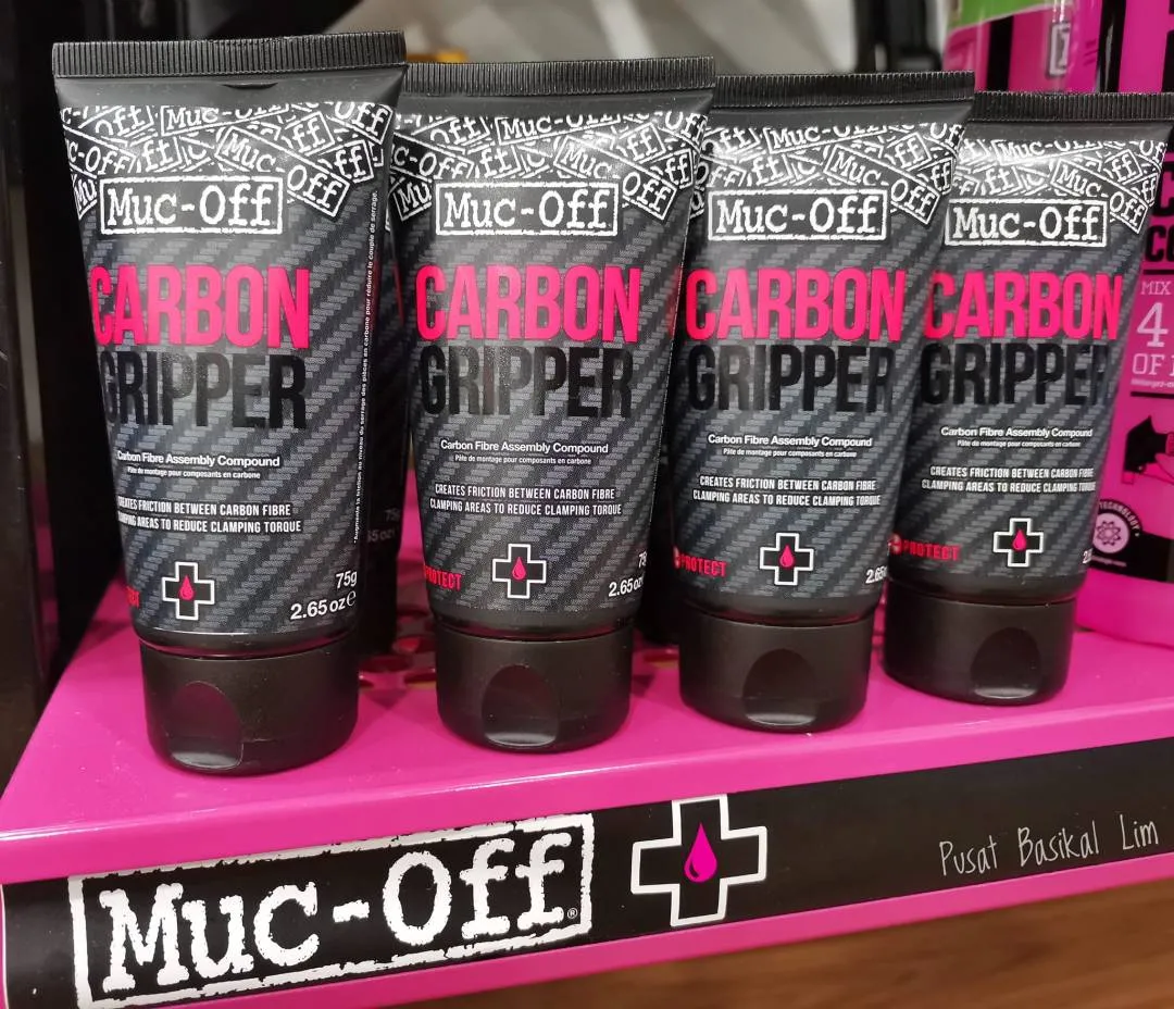 Muc-Off Carbon Gripper (75g) Price : RM 82.00 Pls Call/WhatsApp For More Details 019-724 3336 Wei 019-779 0668 Daniel 012-731 3002 Desmond Put simply, the Muc-Off team have created a highly efficient carbon fibre assembly compound that is essential for preventing over-tightening and creating a secure ‘mating friction’ between carbon surfaces or indeed carbon to metal parts. Designed for mechanics and riders building their own bike, the Muc-Off Carbon Gripper creates friction between carbon fibre clamping areas and lowers clamping torque thus decreasing the chance of fatigue, internal fractures or shortening component life. So get your money’s worth out of your carbon fibre parts. Use Muc-Off Carbon Gripper! Pls visit our store at : Pusat Basikal Lim 16 Jalan ekoperniagaan 2/7 Taman ekoperniagaan , 81100 Johor Bahru , Johor .