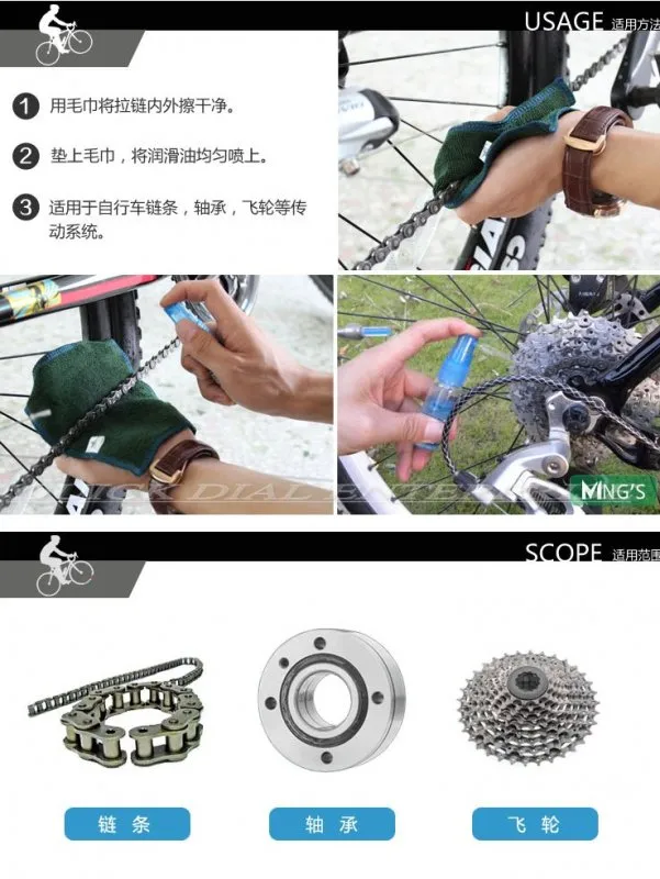 Advanced materials, lubrication, anti-rust; spray packaging, anti-rust is more simple. Precise ejection amount control can be pressed spray 150 times. Uniform spray area, significant chain after cleaning rust effect; environmentally friendly bottles for refillable.