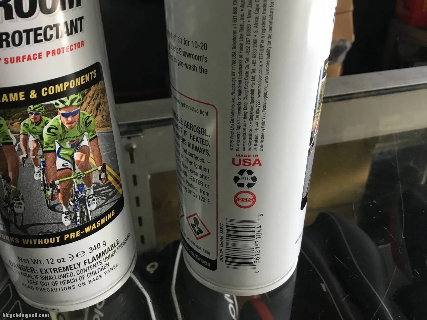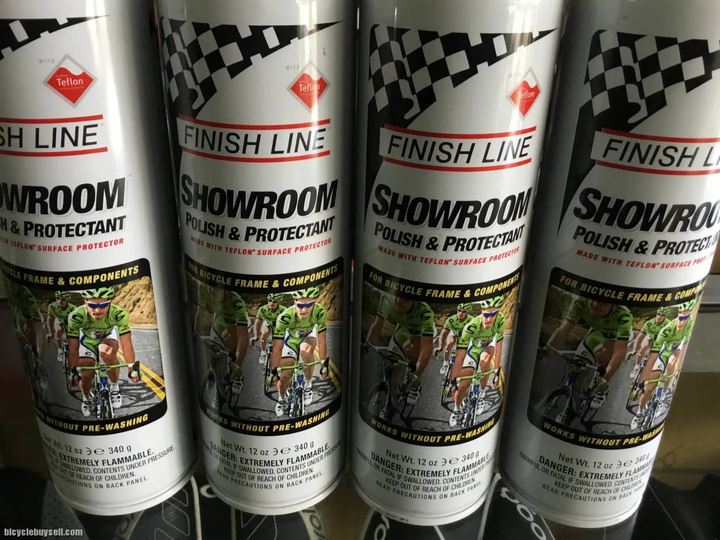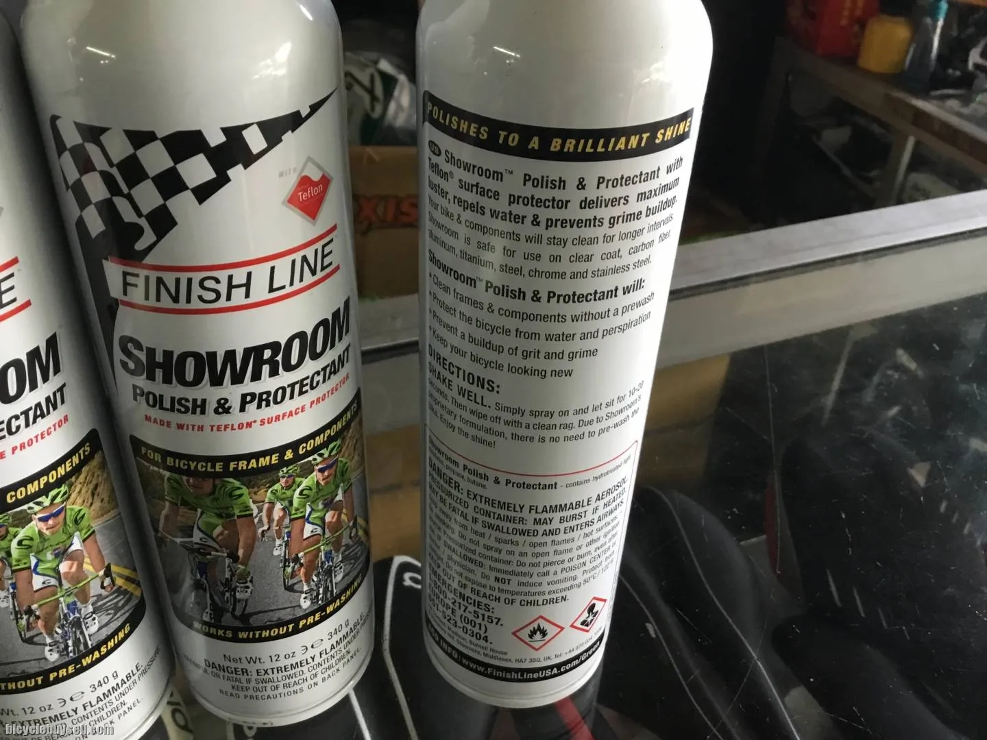 Showroomâ„¢ Polish & Protectant with Teflonâ„¢ surface protector delivers maximum luster, it repels water, and prevents grime buildup. Your bike and components will stay clean for longer intervals. Showroom is safe for use on clear coat, carbon fiber, aluminum, titanium, steel, chrome, and stainless steel.
