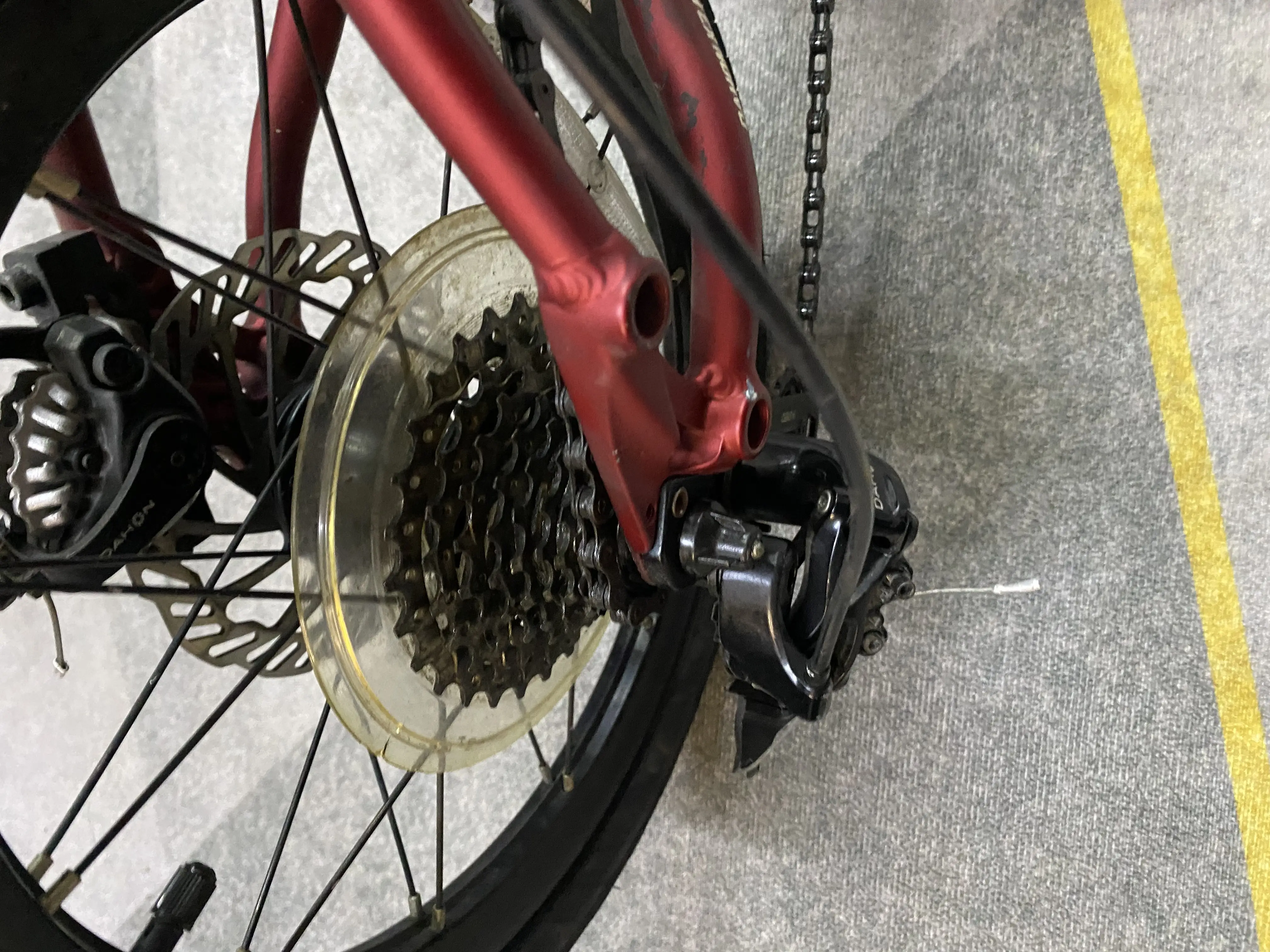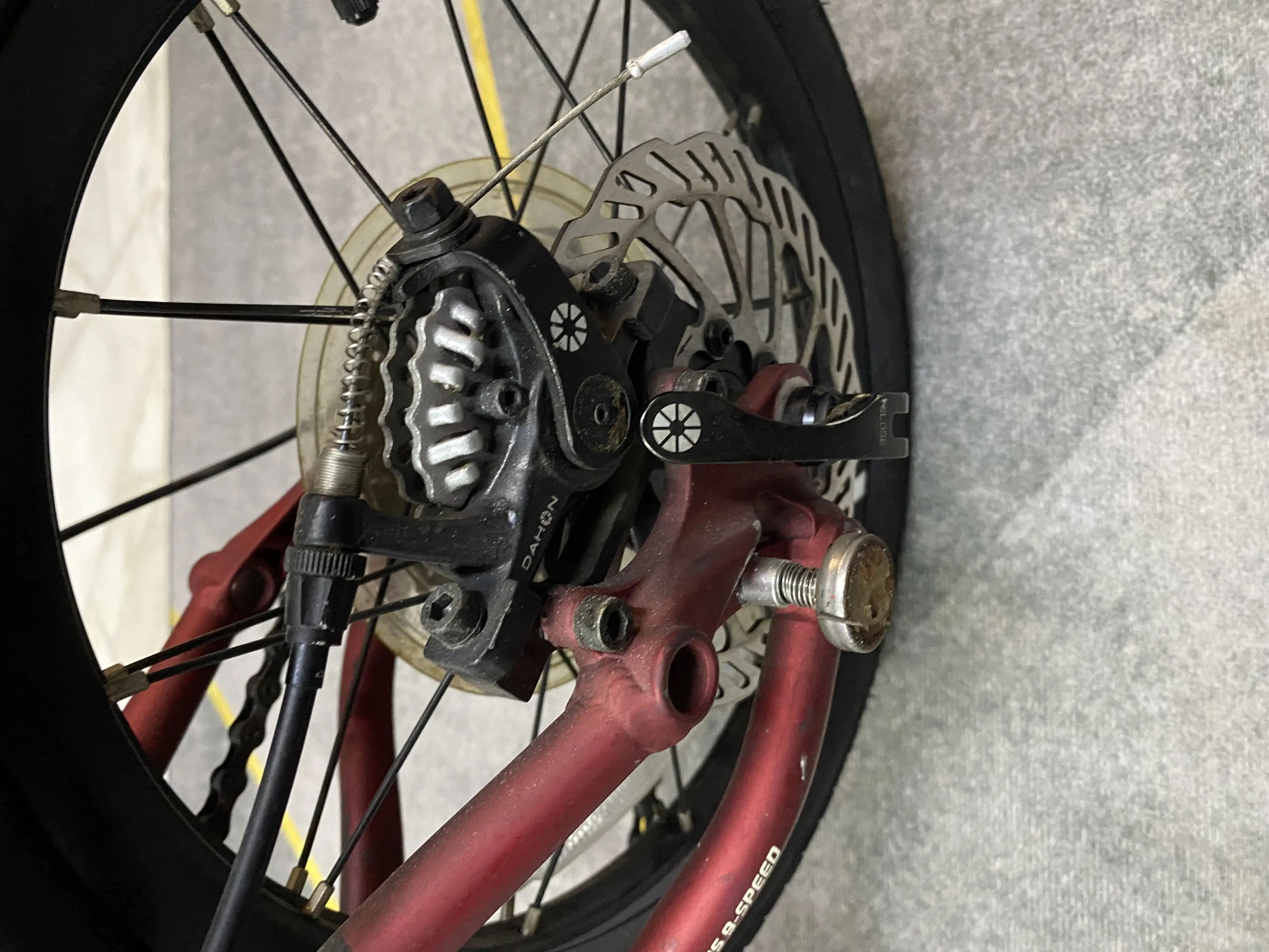 Rear Hub : DAHON Custom 135mm 20 Hole Disc 9 spd cassette.
