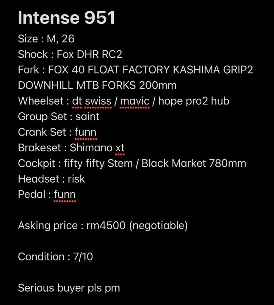 DH BIKE INTENSE 951 26â€