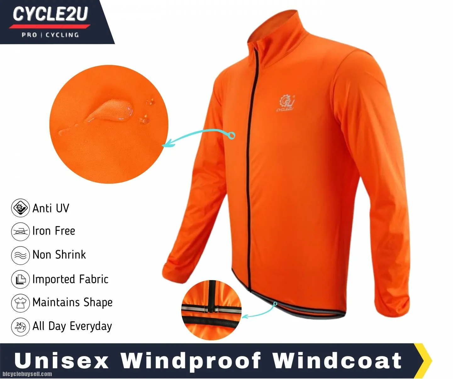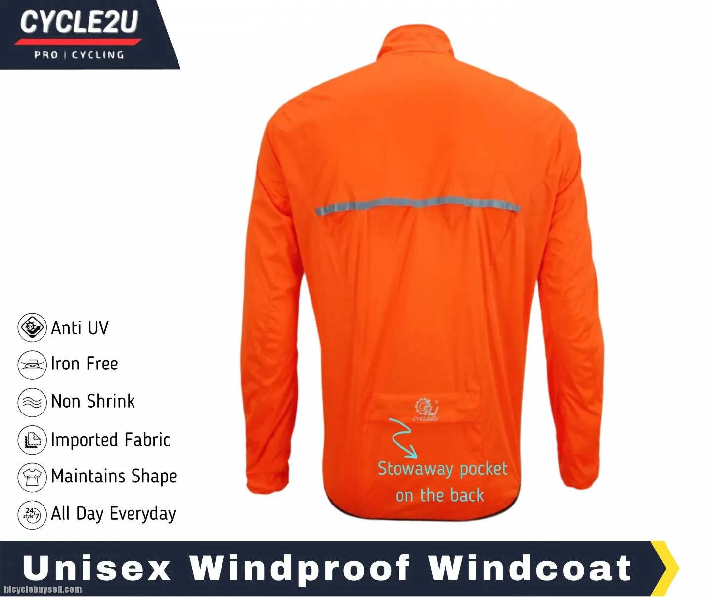CYCLE2U Fluorecence Orange 100% Rainproof + Windproof + Light weight