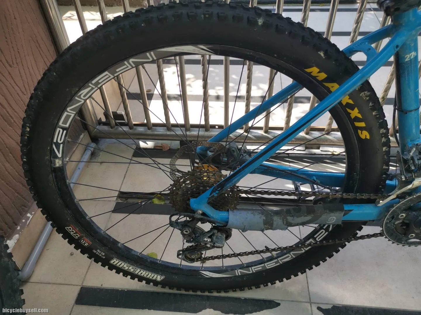 Rear Wheel - Industry Nine (I9) torch hub with sapim spoke , Sunringle Inferno 27 rim , Maxxis Aggressor 27.5 - 2.3 (90%)
