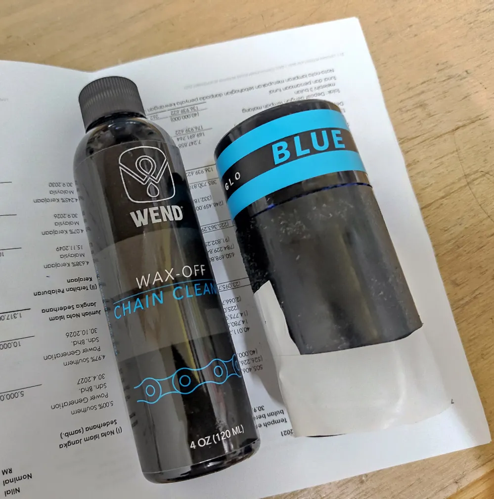 A used item WEND Chain wax. Still have about 70-80%. the twist bottle is spoil, just have to push up to use.