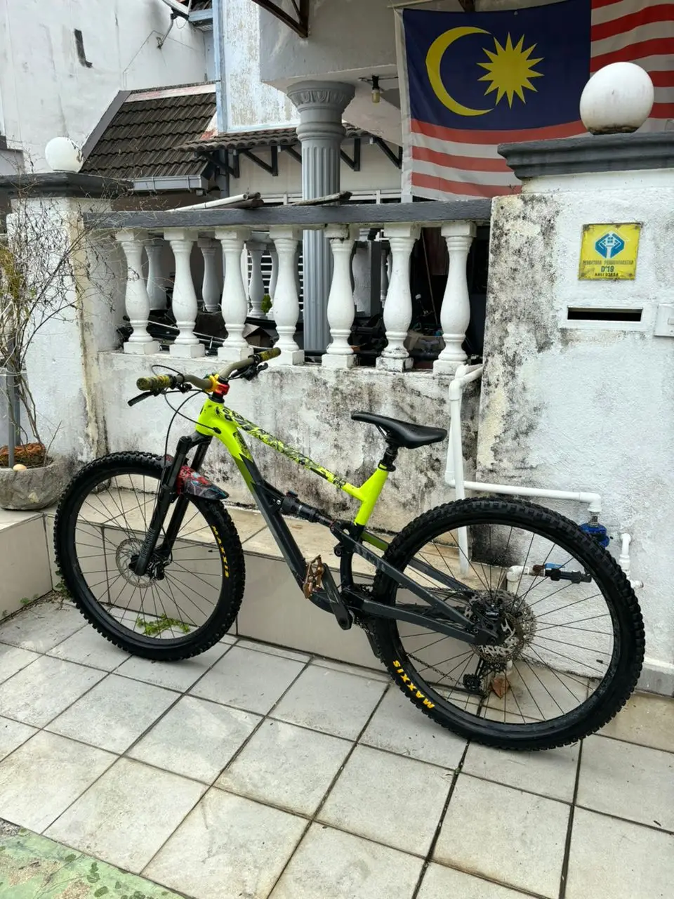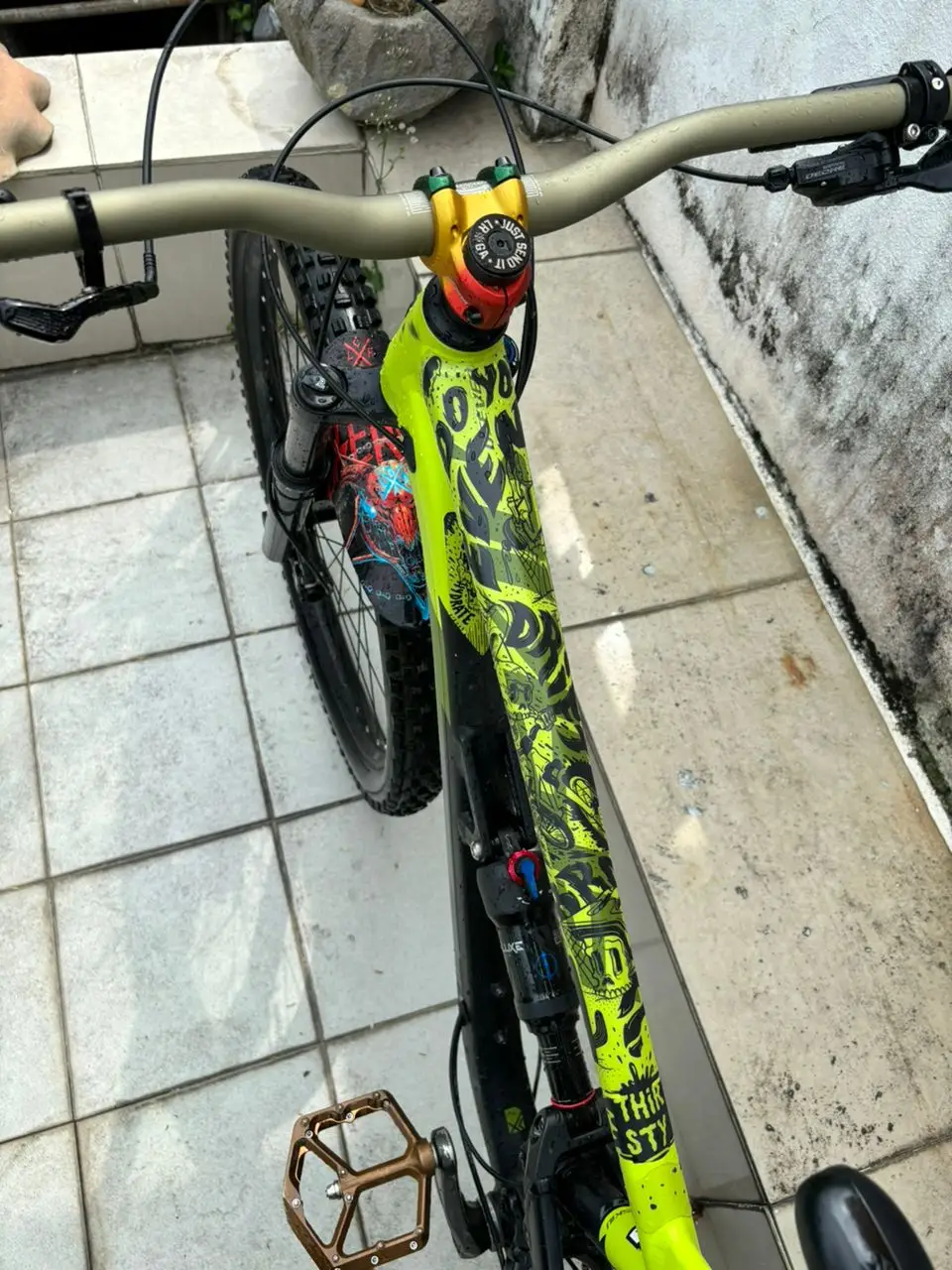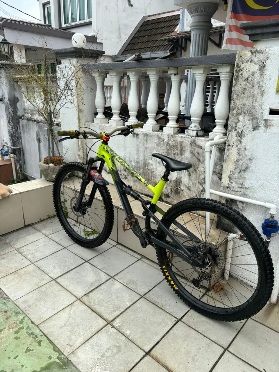 Banyak dah upgrade, renthal handlebar, dyedbro frame protection, spank pedals and stem, loose riders accessories, tektro 4 pot brake, tayar maxxis DHR II dan Assegai