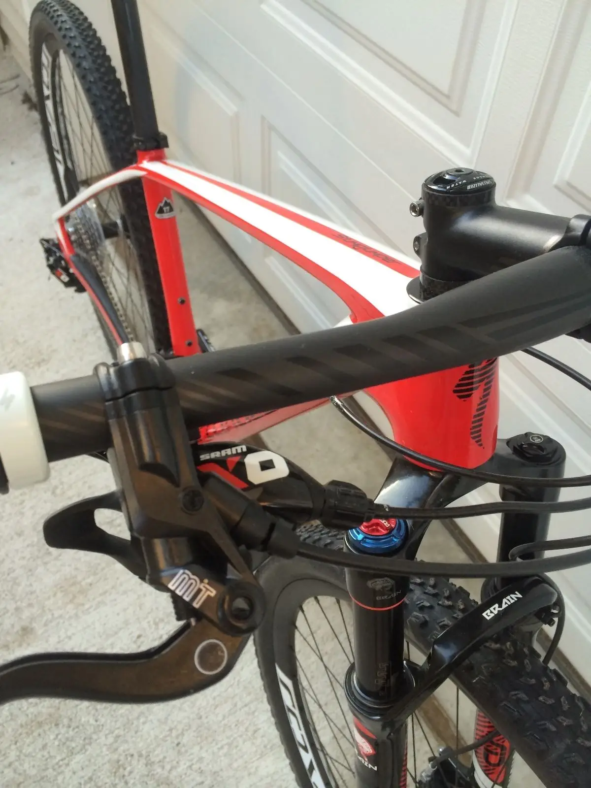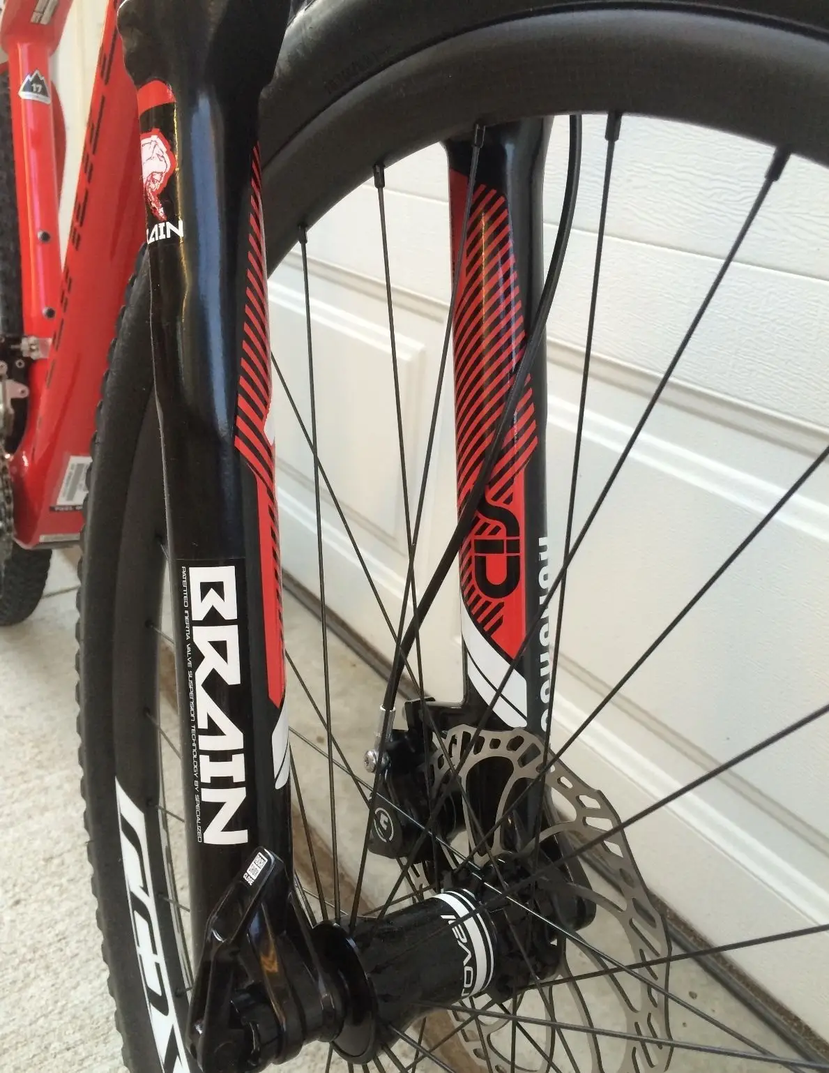 FORK: Custom RockShox SID 29 Brain, inertia valve damper, Solo Air spring, tapered alloy steerer, top-mount Brain Fade and rebound adj., 15mm thru-axle, 90mm travel