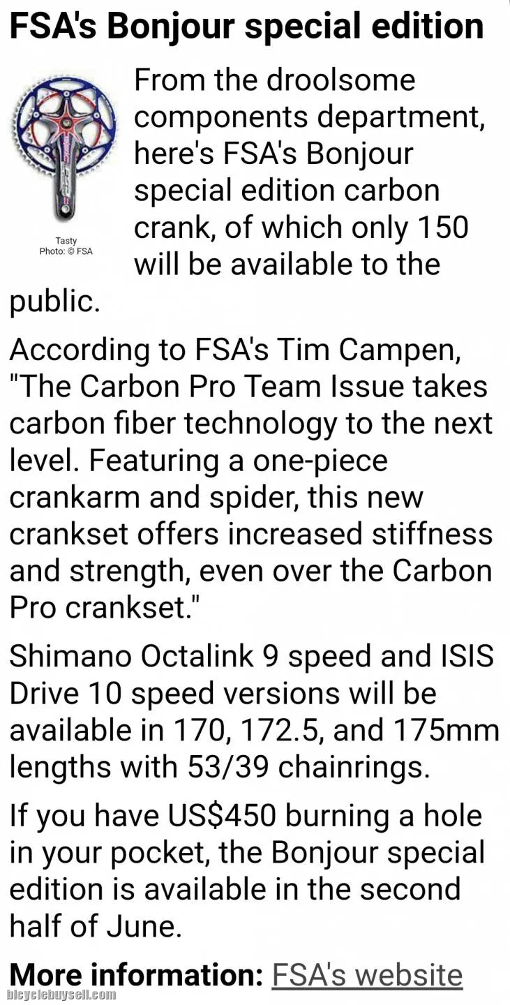 4. Chainring & Cranks: FSA Bonjour.fr (LIMITED EDITION) 39T 53T