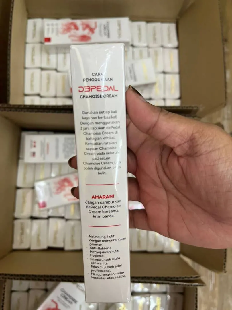 Depedal Chamois Cream 120ml (This Cream Formula and designed For Asia Weather Hot and Rainy every year) kkm approved NOT211103453K ðŸŒDepedal chamoise cream is specifically formulated with shea butter , menthol and witch hazel to produce a cooling and soothing effect for Cyclists , Triathlon , Running and Endurance Sports . ðŸŒDepedal Chamoise Cream has been tested by Pros. Can be used for Ironman , Hiking , MTB ,Gravel , Fondo , Running , Century Ride , Audax and Race competition. ✔ï¸INGREDIENT CHAMOISE CREAM: 📌Aqua,Butyrospermum parkii butter (Shea Butter), Olea Europea (Olive ), Fruit Oil,Propylene Glycol,Glycerin (And) Water (And) Hamamelis Virginiana (Witch Hazel) Extract,Aloe Barbadensis Leaf Juice,Menthol Crystal,Synthetic beeswax ,Phenoxyethanol ,Thriethylene glycol ,Fragrance. ✔ï¸HOW TO USE DEPEDAL CHAMOISE CREAM ? 📌Simply apple before each ride and you'll avoid having to miss a day the bikel by using 3 fingers, start by applying at the mos critical points. After the seams are covered,spread the remaining cream on the chamois.You may also apply on yourself. ✔ï¸BENEFITS OF DEPEDAL CHAMOISE CREAM 📌Reduces friction&protect skin 📌antibacterial properties 📌Cooling effect 📌Hygienic 📌Gender neutral 📌Tested by pros 📌Minimizes the risk of saddle sore â—â—WARNING â—◠📌Don't mix depedal chamoise cream up with your leg warm up rub. ✔ï¸CARA PENGGUNAAN DEPEDAL CHAMOISE CREAM 📌Gunakan setiap kali kayuhan berbasikal! Dengan menggunakan 3 jari , sapukan depedal chamoise cream di bahagian kritikal.Kemudian ratakan sapuan Chamoise Cream pada seluruh pad seluar . Chamoise Cream juga boleh digunakan pada kulit. ✔ï¸KELEBIHAN DEPEDAL CHAMOISE CREAM 📌Melindungi kulit dengan mengurangkan geseran 📌Anti-Bakteria 📌Menyejukkan kulit 📌Hygienic 📌Sesuai untuk lelaki dan wanita 📌Telah diuji oleh atlet professional 📌Mengurangkan risiko kesakitan atas saddle â—â—AMARAN â—◠📌Jangan campurkan depedal Chamoise Cream bersama krim panas. #duraace #cycling #bicycle #basikal #shimano #bib #jersey #hiking #marathon #chamois #ultegra #roadbike #mountainbike #foldingbike #gravelbike #sepeda #groupset #wheelset #crankset #saddle