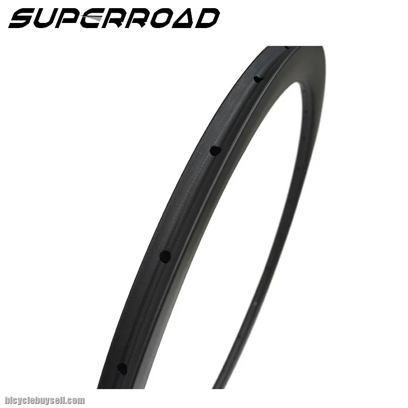 Model:wU45T Size:700c Material:Full carbon T700 Brand Name:Superroad Brade Track Width: 25mm Drilling:Traditional/Internal Max Width:26mm spoke Hole:16/18/20/21/24/28H Rim Depth:45mm Brake Track:Carbon,Basalt,Disc Brake Rim Type:Tubular weave: UD/3K/12K,3K Twill,12K Twill,3K+Kevlar weight:395+/-15g Finish: Matte/Glossy ERD:549mm Max Tyre Pressure: 125Psi/8.5Bars Max Spokes Tension:130kgf Roundness:<0.25mm Brake Track Flatness:<0.15mm Max Rider Weight: 125kg Decal: customized standard:EN Business:OEM&ODM warranty: 2 Years Tel: +8613750980256 Whatsapp: +8613750980256 Website: http://www.superroadbikes.com