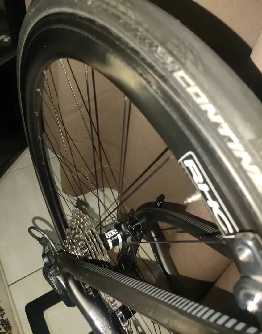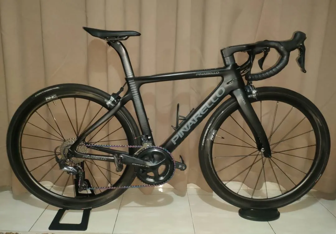 Pinarello GAN -frame size 46.5 -Groupset ultegra r8000 (Crank 170-chainring 52/36-cassete 11-30) -Pro One integrated carbon handlebar 400/110 -pedal ultegra r8000 -saddle fizik vento argo r1 carbon Wheelset carbon RHC 45mm hub dt swiss 350 / tire gp5000 25mm Cod gombak 0123633237 Rm10999