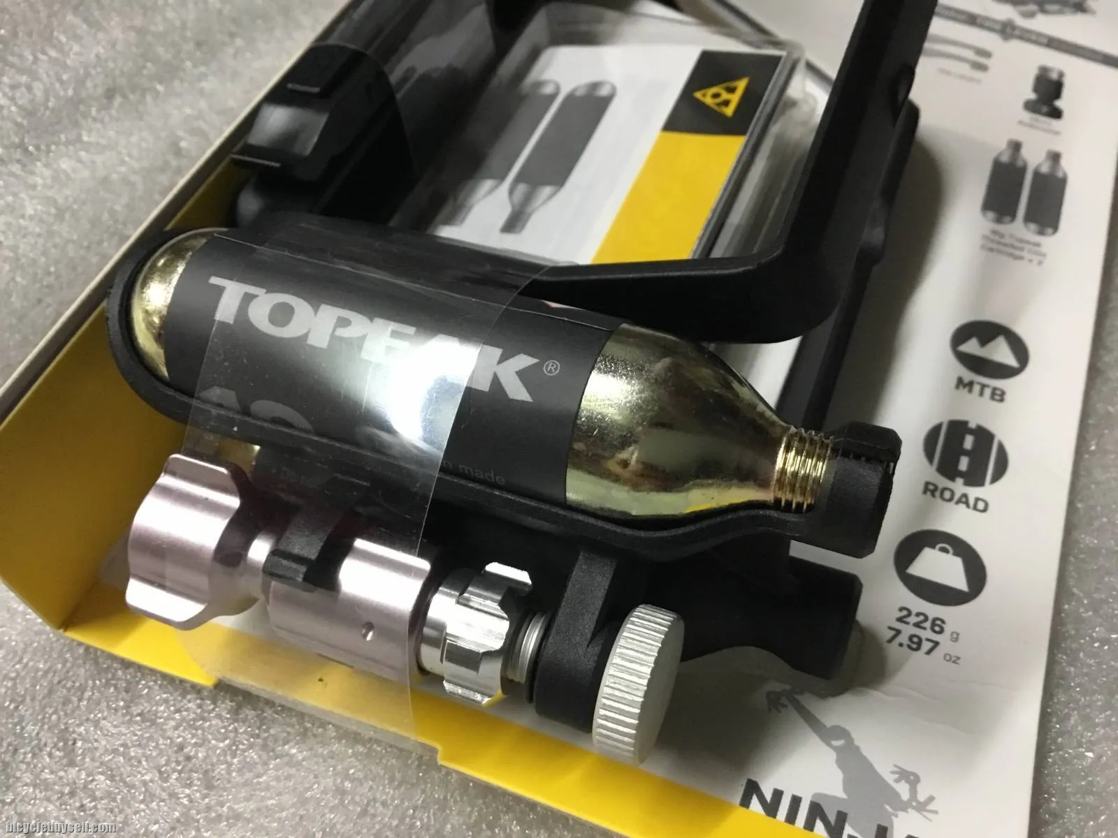 2 threaded 16g CO2 cartridges Compartment for CO2 inflator & cartridges