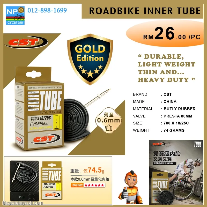 (NP CYCLE LAB KUCHING) CST ROADBIKE INNER TUBE 700X25C PRESTA SUPER HEAVY DUTY