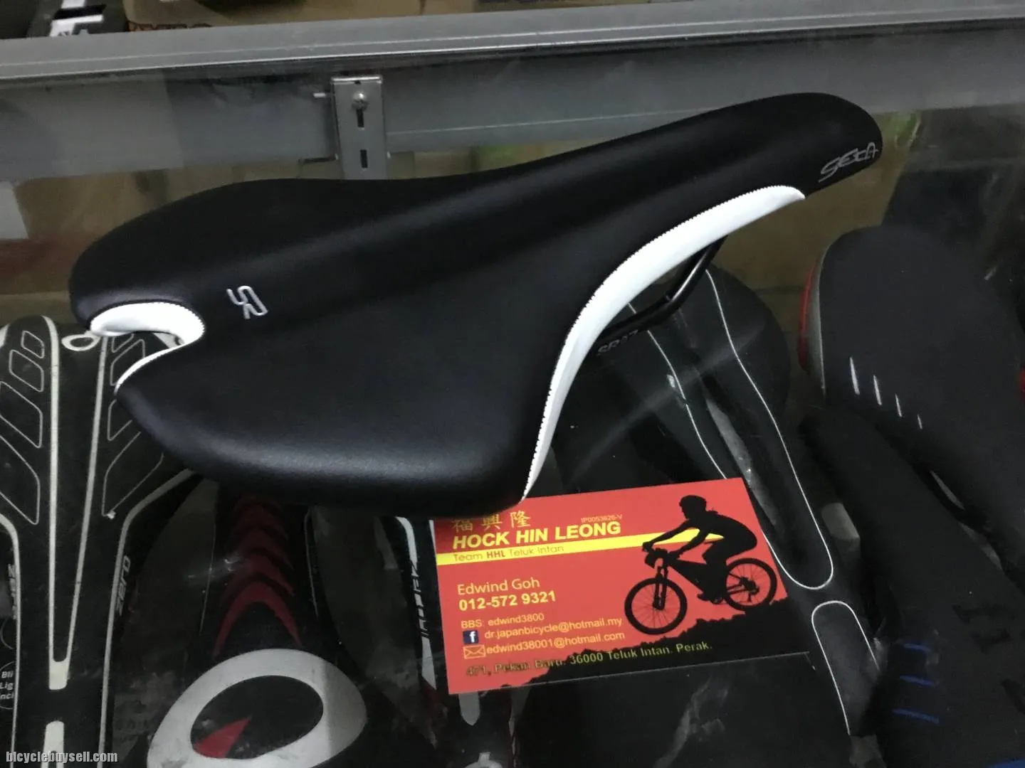 Selle royal seta is performance saddles. Light,sport,comfort. Selle Royal Seta The Seta saddle from Selle Royal is a handmade high-performance saddle with a flat surface designed to be highly responsive & flexible for almost every riding position. Lightweight Manganese rails & Flex Foam support provide you with full support even on the most challenging rides. Features: Flat surface Width: 143mm Length: 278mm Weight: 302g Free pos w.m. Sabah sarawak add Rm15. More details pls see picture. My shop at teluk intan,Pekan baru.beside pasar. If my phone switch off,pls email me.maybe I oversea,thx. Email:edwind38001@hotmail.com Tel:012-572 9321