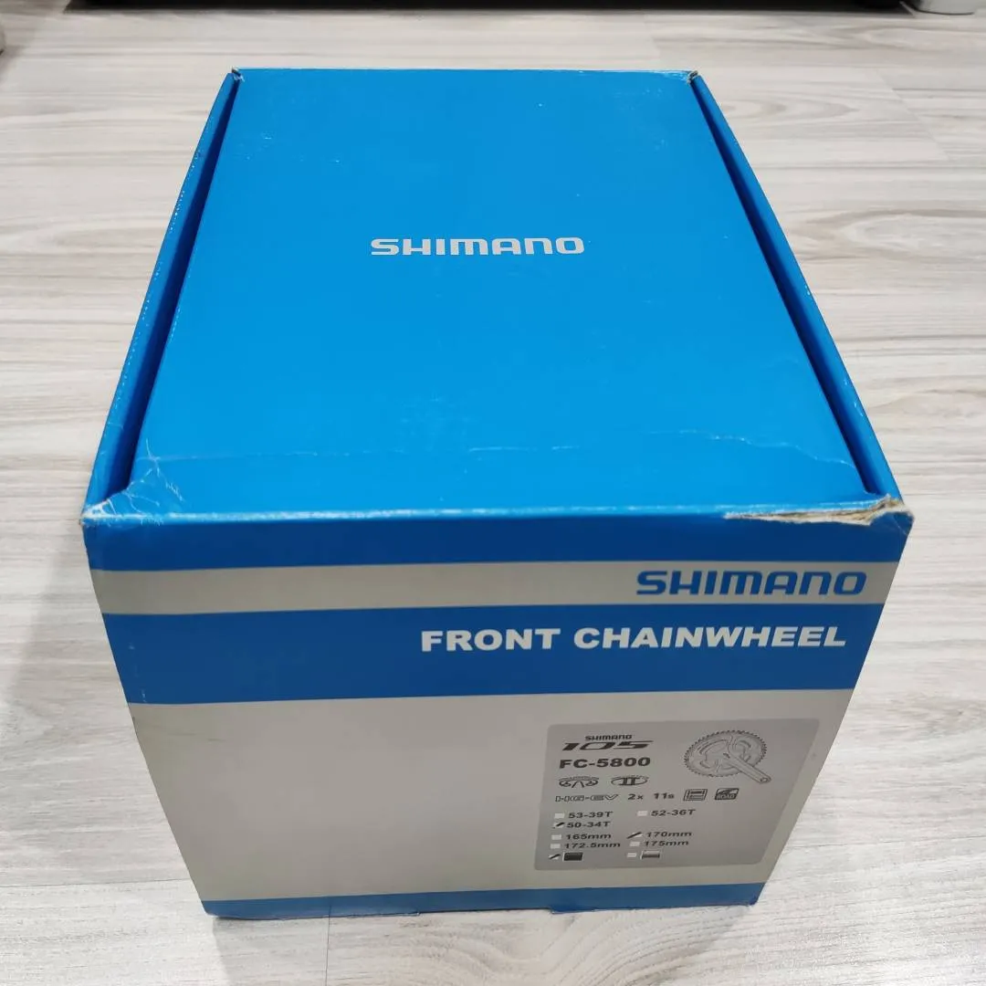 Shimano 105 FC-5800 53/39 170mm Crank Description The Shimano 105 FC-5800 crankset guarantees smooth and precise shifting and optimal chain engagement. This crankset is also equipped with Hollowtech II technology, offering the best balance of rigidity, strength, lightness and high performance rotation. This system consists of a hollow crank that is both ultra-light and rigid combined with a bottom bracket spindle integrated into the right crank, offering even more lightness and rigidity. Features Brand: Shimano Product : Crankset Range: 105 FC-5800 Centre distance: 110 mm Crank handle length: 170 mm Technology: Hollowtech II Compatible chain: 11 speeds Number of chainrings: 2 Toothing : 53/39 teeth Compatible rear derailleur: 11 speeds Discipline: Road Made in Japan Weight 725G +- rm15 postage to peninsular malaysia rm25 for Sabah & Sarawak COD Petaling Jaya SS2 interested sms or whatapp me 016-249 1052 http://www.wasap.my/60162491052 http://bicyclebuysell.com/#!brand=&page=1&priceFrom=&priceTo=&search=davidcheng&tab=search