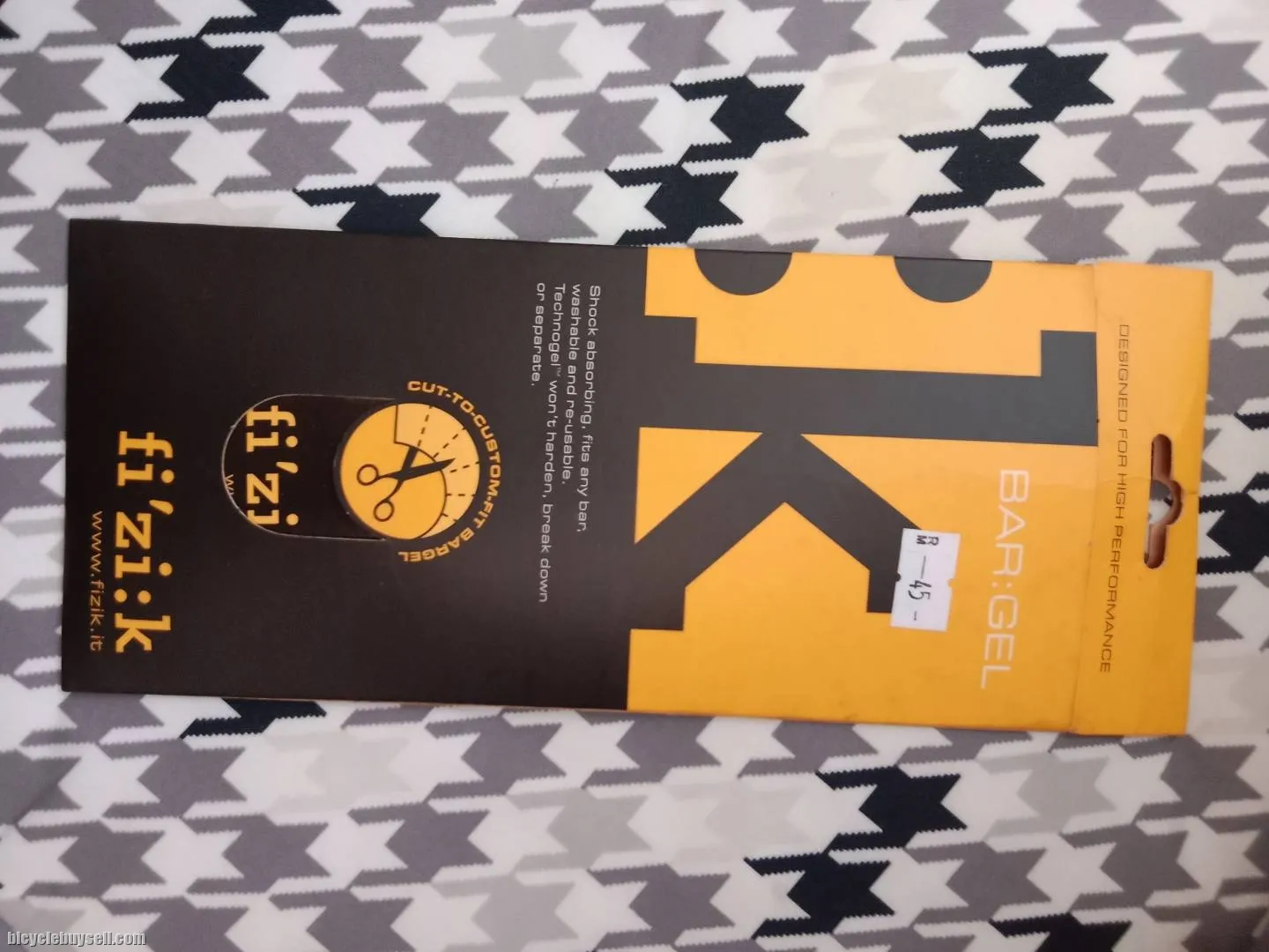 Fizik Bar Gel Pads for Road Bicycle Handlebar / Drop Bars 4-Pads for Wrap Made In Italy One way to address cyclist palsy (hand numbness) is to decrease the vibration and shock of your handlebar. The Fizik Bar Gel addresses this directly. Kit includes four pieces of Fi'zi:k Bar Gel Gel pads deform along all three axes, molding to the shape of your hands Bar Gel won't harden, break down or separate over time Vibration-absorbing Bar Gel is durable, comfortable, and helps eliminate numbness Includes four gel pads that can be cut to fit the tops and drops. Pm me for info at 0129122706. Cod in Klang or Shah Alam. Postage by Poslaju add RM 7. Thanks.
