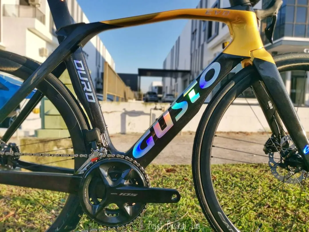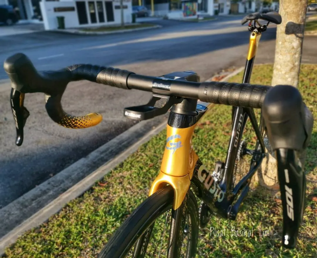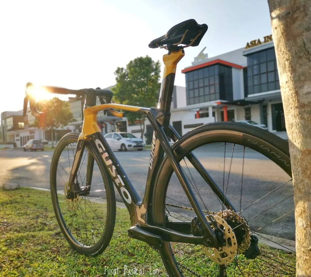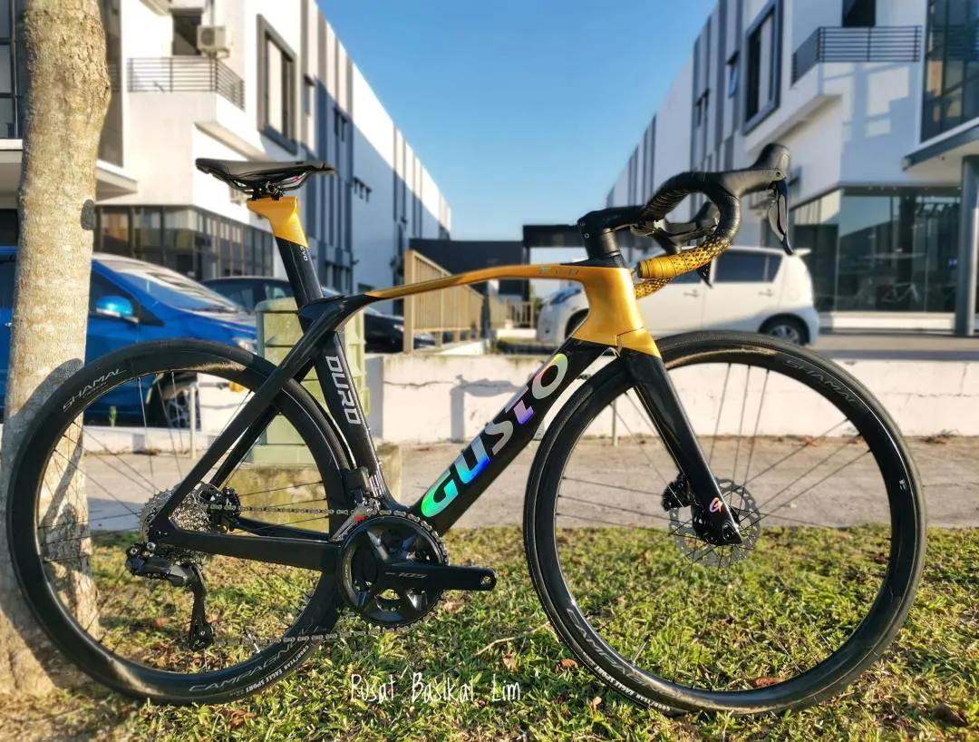 Gusto Duro Evo DB Sport Legend Price : RM 12,600.00 Pls Call/WhatsApp For More Details 019-724 3336 Wei 019-779 0668 Daniel 012-731 3002 Desmond ✨ Torayca T-1000 +LLC Carbon Frameset ✨ Shimano 105 R7170 DI2 ( 2x12 Speeds ) ✨Campagnolo Shamal Disc Carbon Wheelset ✨Attaque Integrated Carbon Handlebar ✨Prologo Dimension NDR Saddle ✨Weight 8.1Kg Pls visit our store at : Pusat Basikal Lim 16 Jalan ekoperniagaan 2/7 Taman ekoperniagaan , 81100 Johor Bahru , Johor .