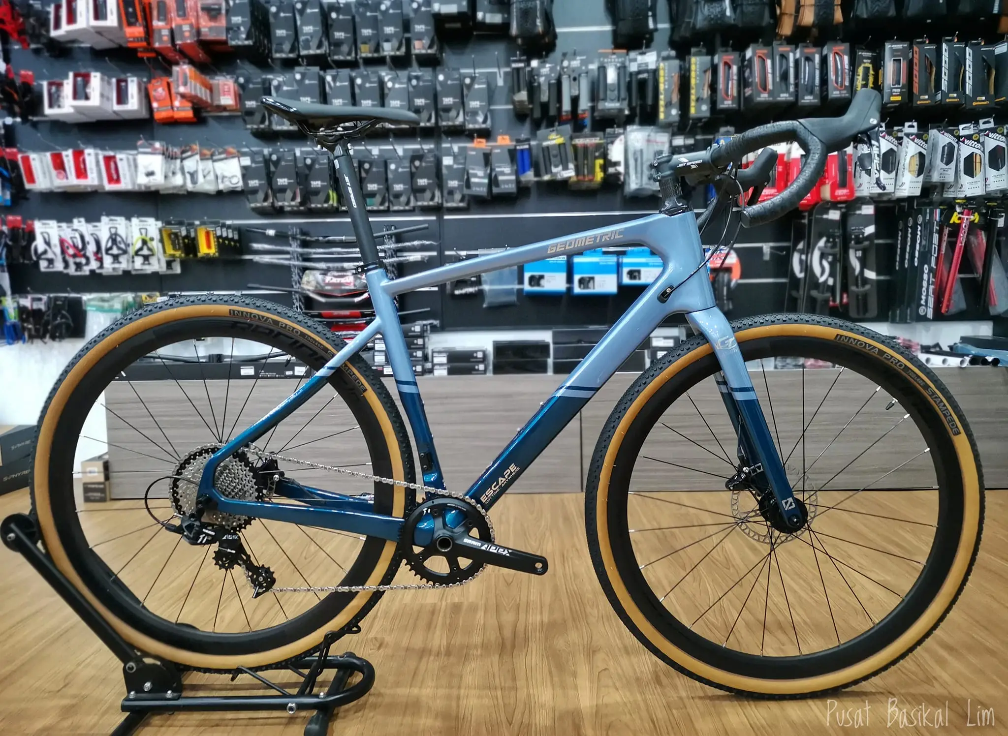Stiff Carbon Frame goes along with Sram Apex 11speed make you unstoppable, Be it road or a little bit of off-road. That kelapa sawit track can be explored with ease.You can draw your very own route with geometric escape gravel bike.